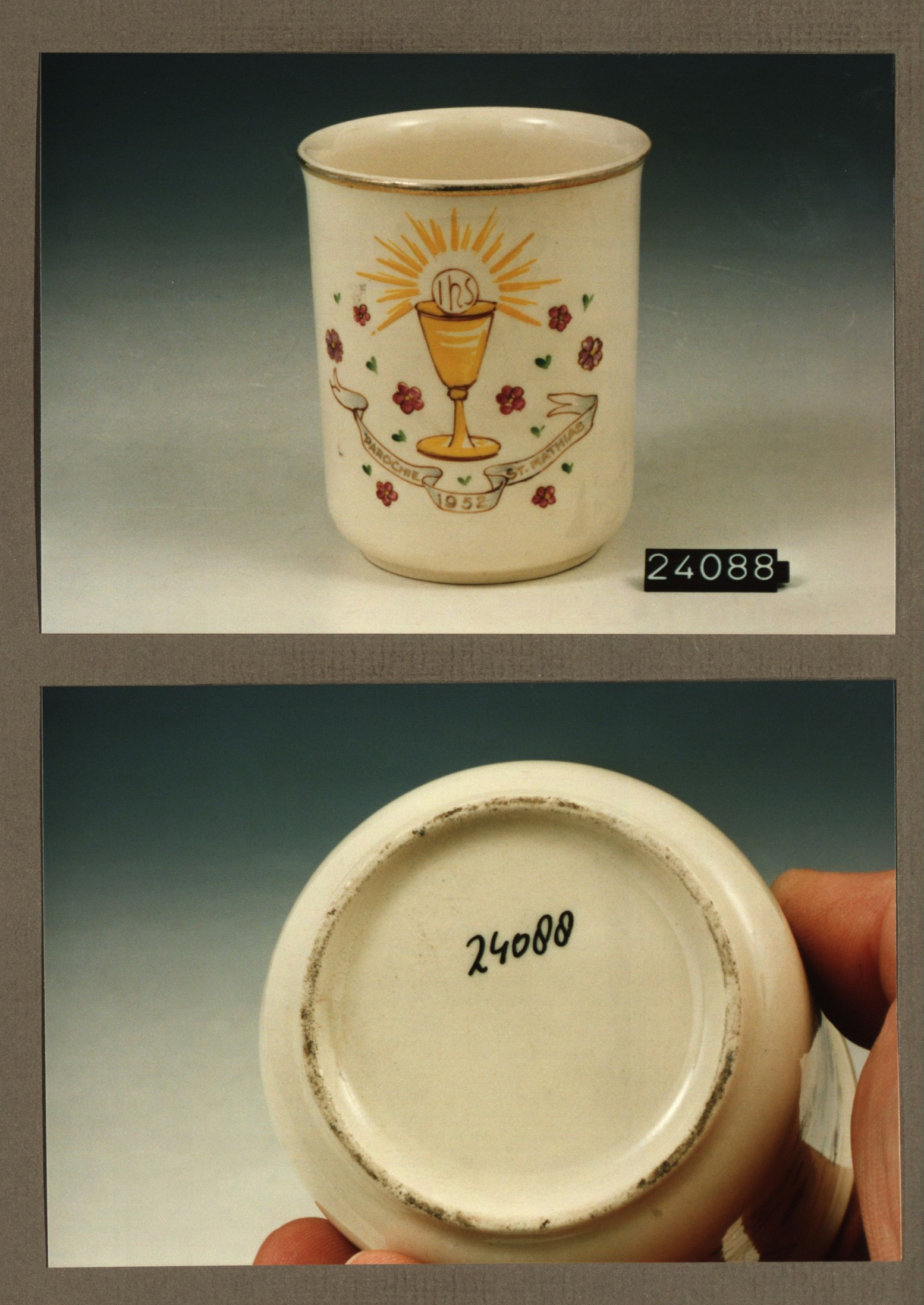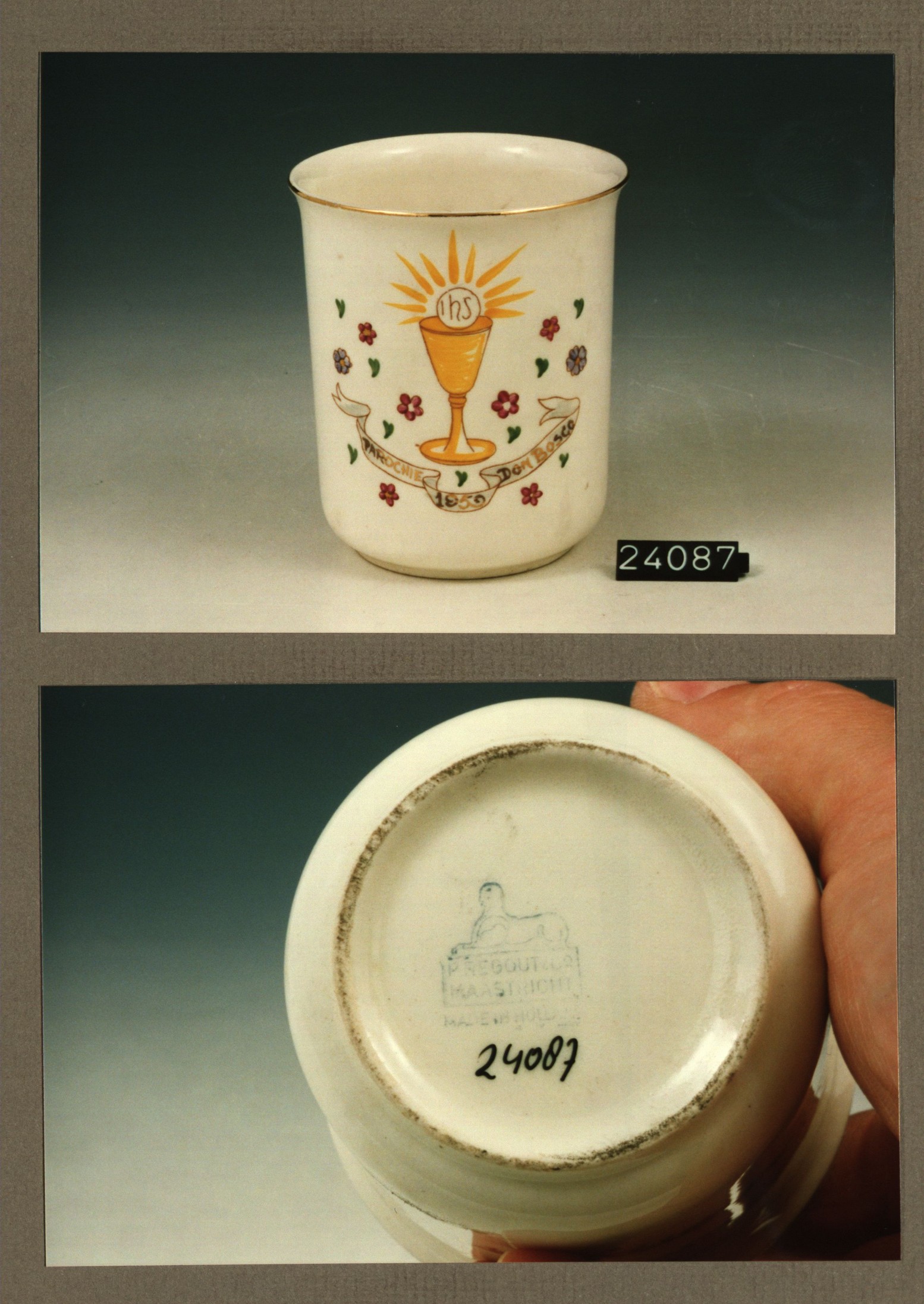 Beker met opschrift, model Jeker met decor Parochie ...