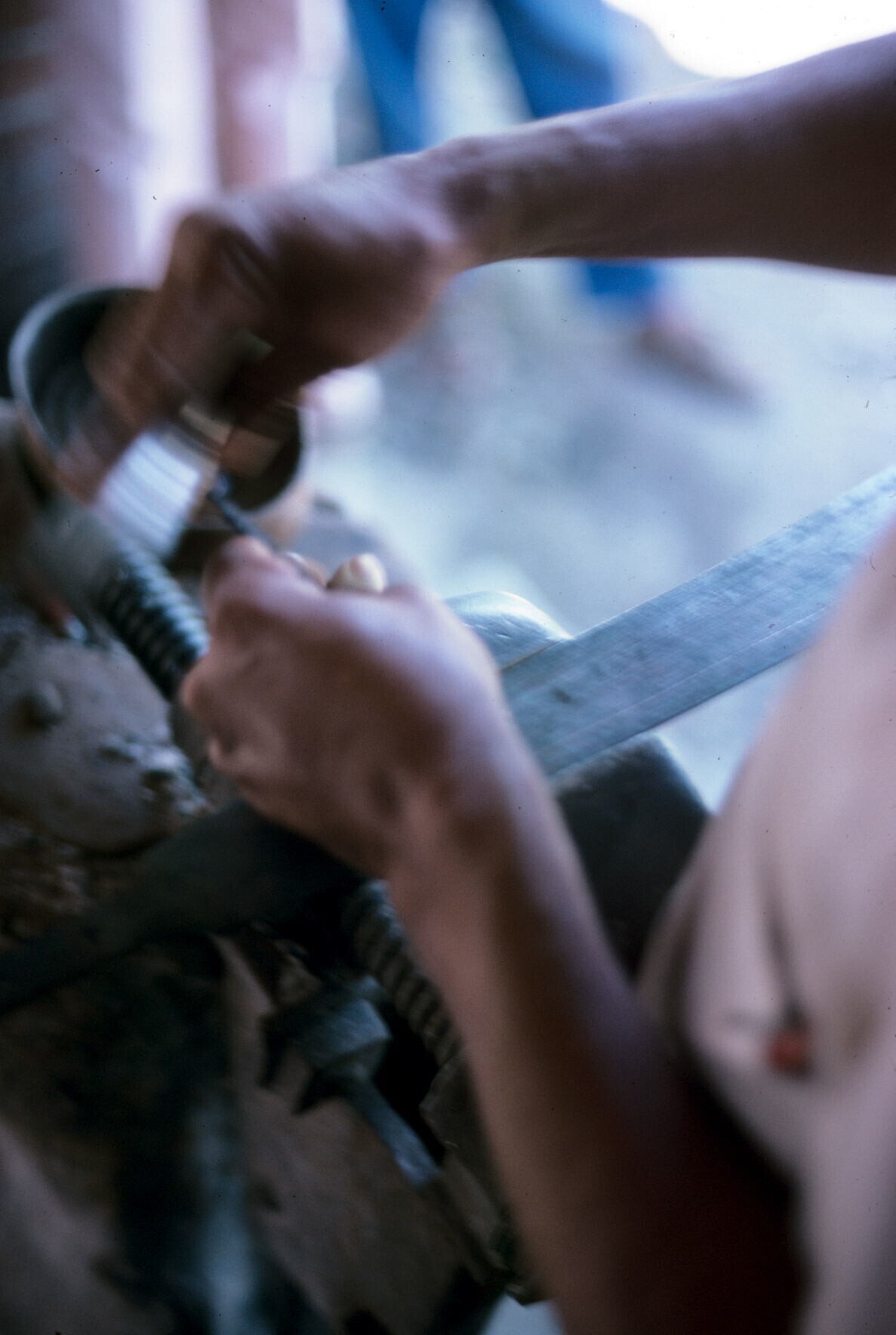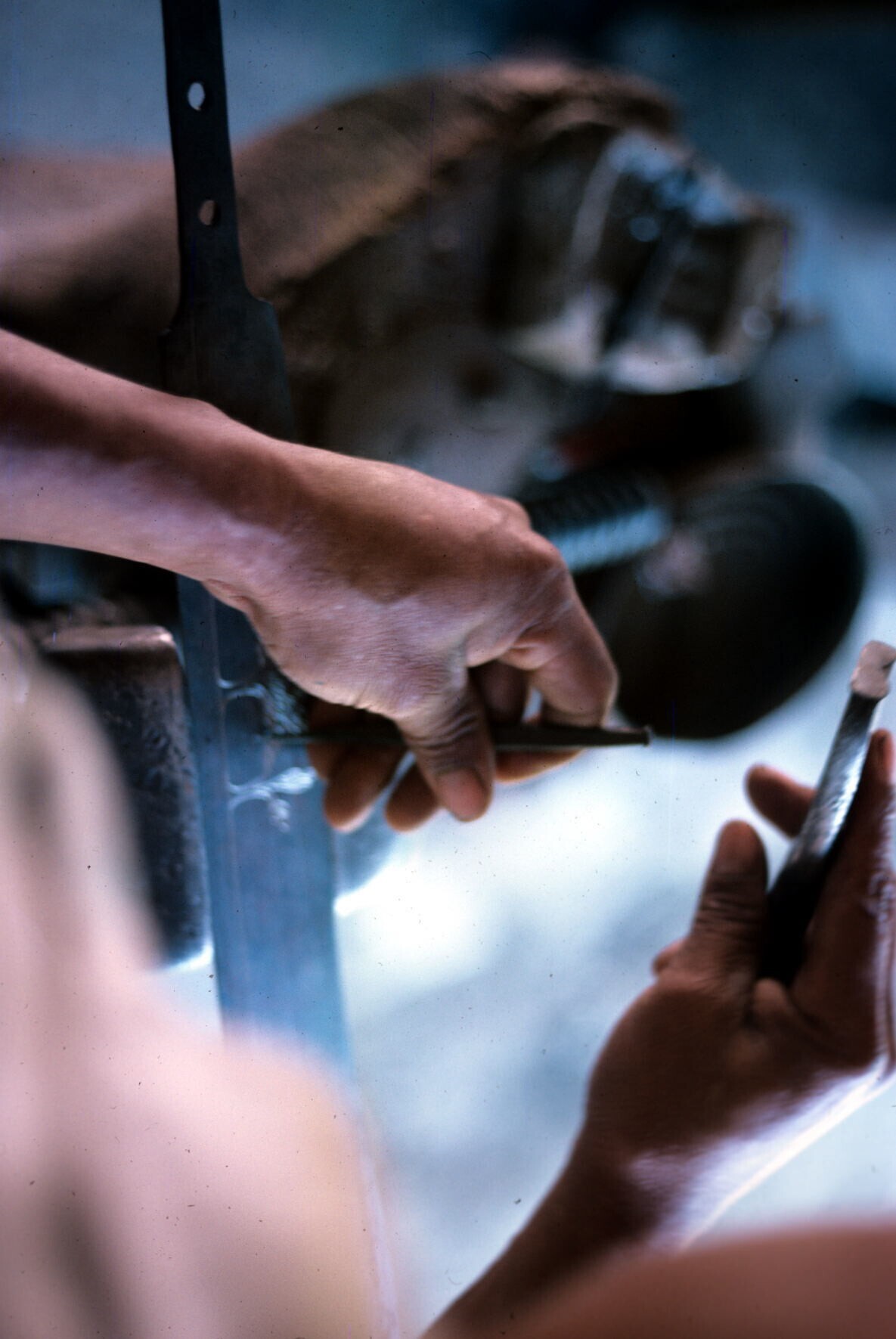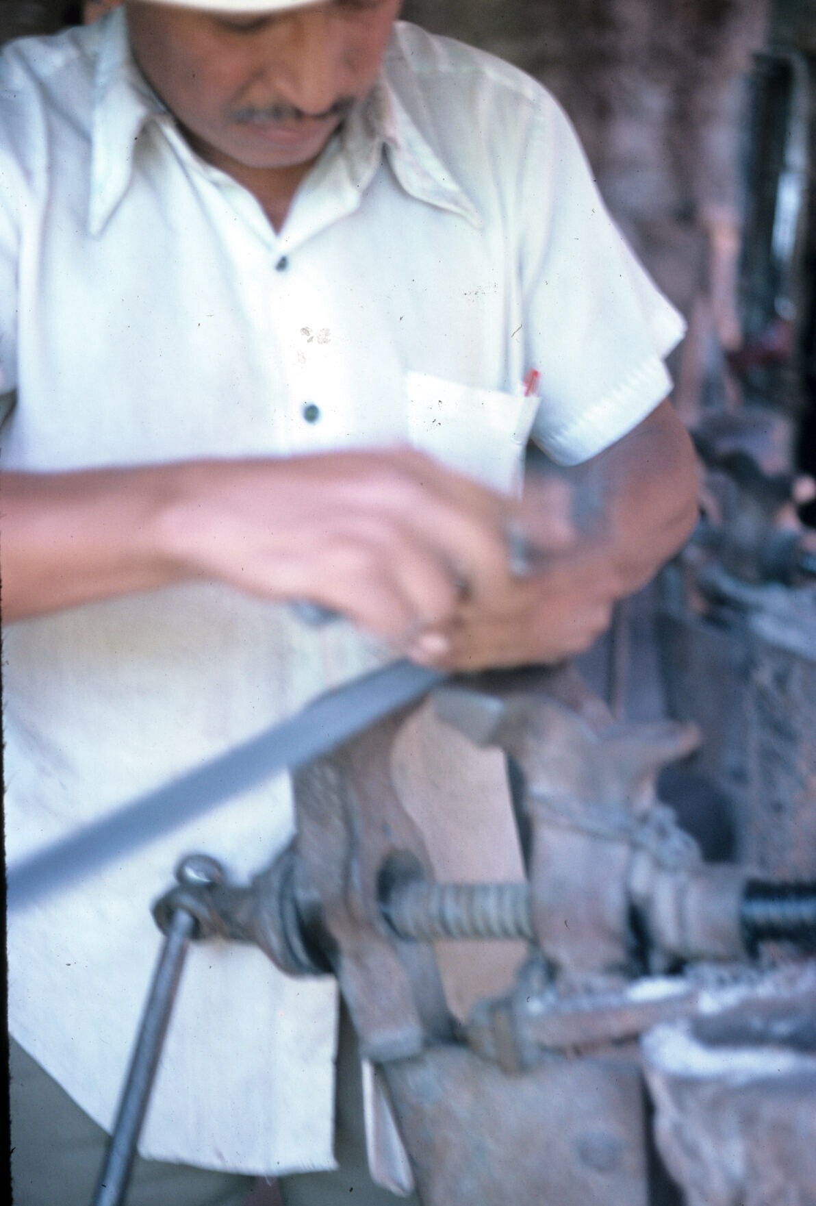 Primitivo Pablo Román, decoratie aanbrengend in machete