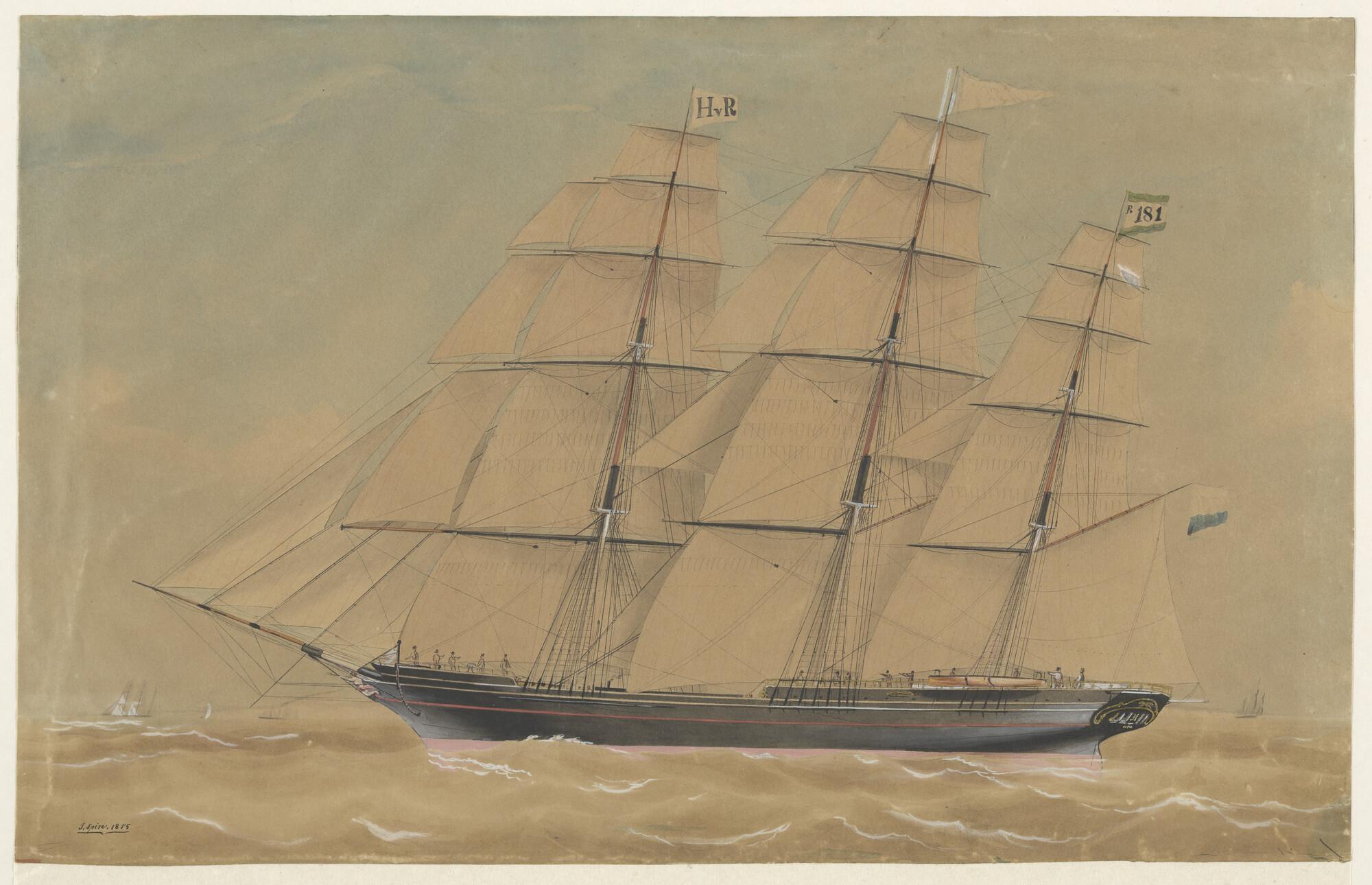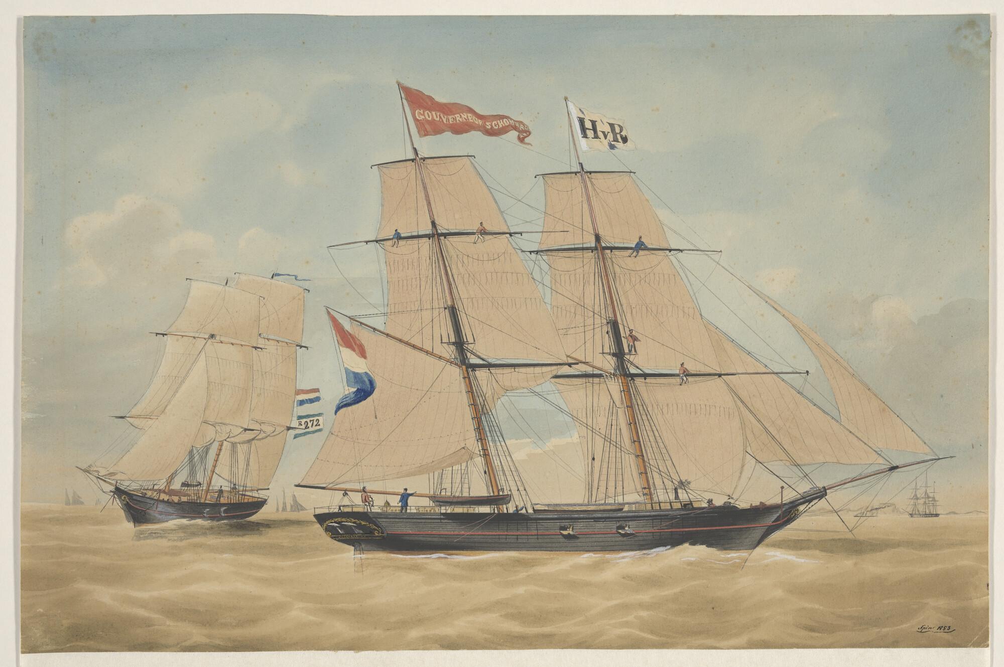 Het brikschip Gouverneur Schomerus onder zeil