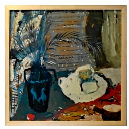 Stilleven met veren in vaas