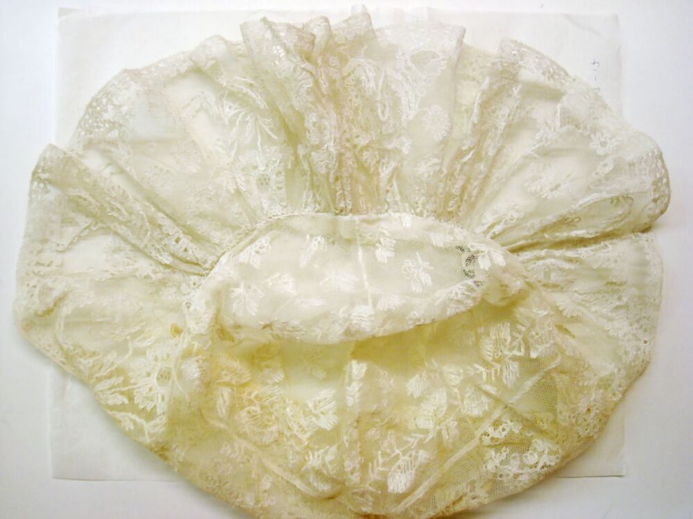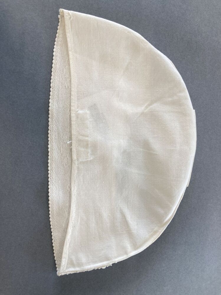 Witte katoenen ondermuts of tipmuts, met gehaakte ra...