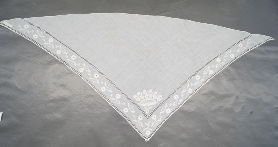 Witwerklap met randje sneewerk gemerkt T.H., ongedat...