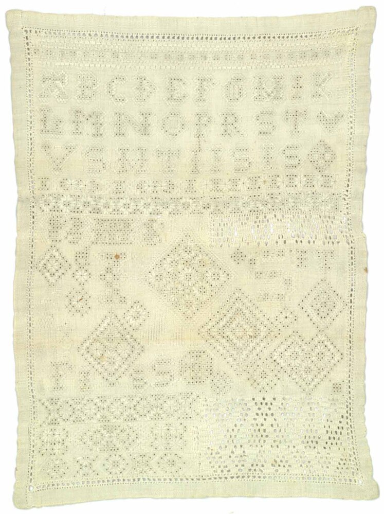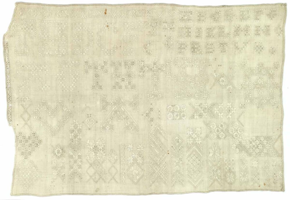 Witwerklap met sneewerk en ruitmotieven, gemerkt I.S...