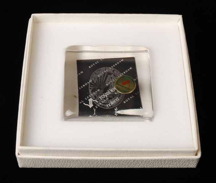 Presse-papier met logo Van Nelle in de bodem