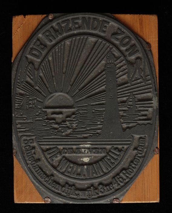 Drukplaat met logo "DE RIJZENDE ZON" van Van Nelle