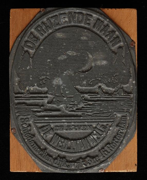 Drukplaat met logo "DE RIJZENDE MAAN" van Van Nelle