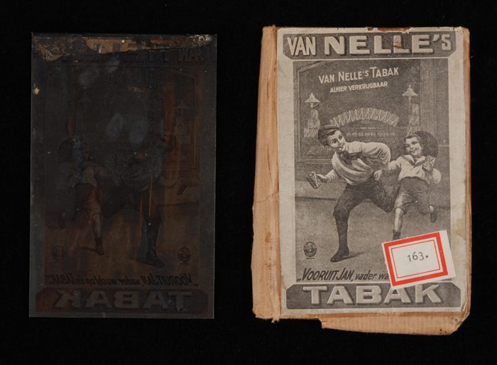 Drukplaat Van Nelle met hollende jongens voor tabaks...