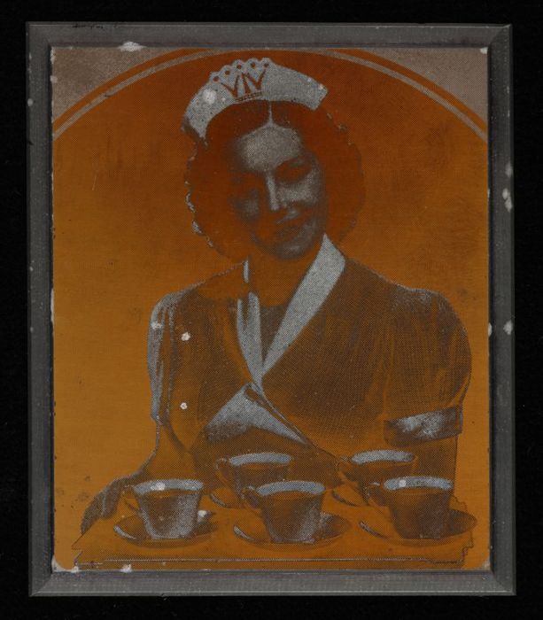 Drukplaat Van Nelle met Nellie en dienblad