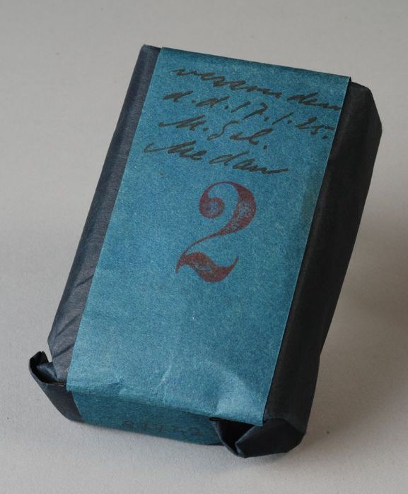 Pak tabak met rood stempel "2"