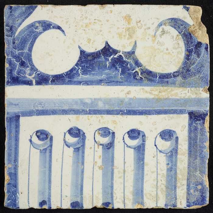 Tegel van schoorsteenpilaster, blauw op wit, deel va...