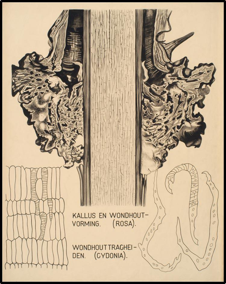 Kallus en wondhoutvorming. (Rosa). Wondhouttracheide...