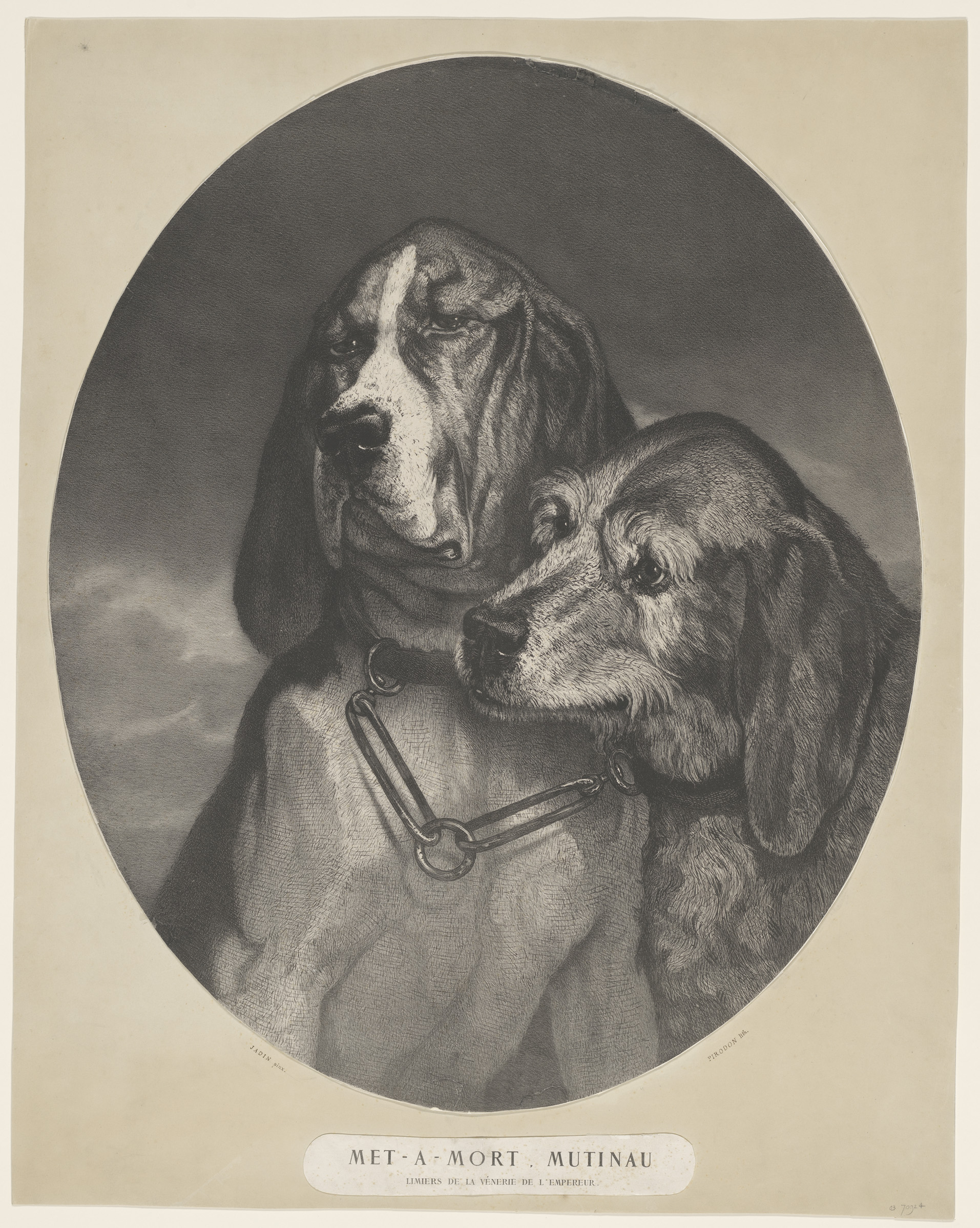 Portret van de keizerlijke bloedhonden Met-a-Mort en...