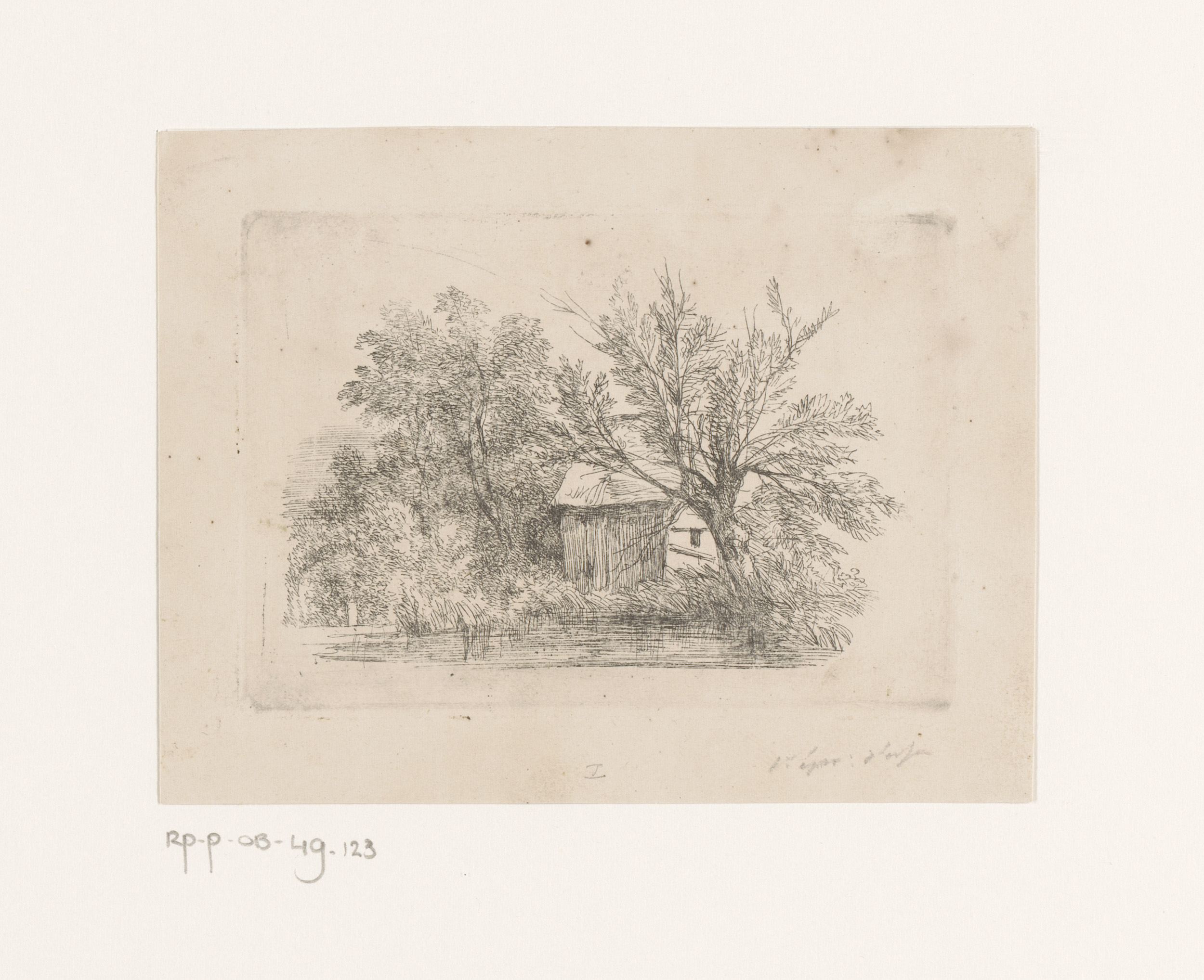 Klein gebouw tussen bomen aan het water