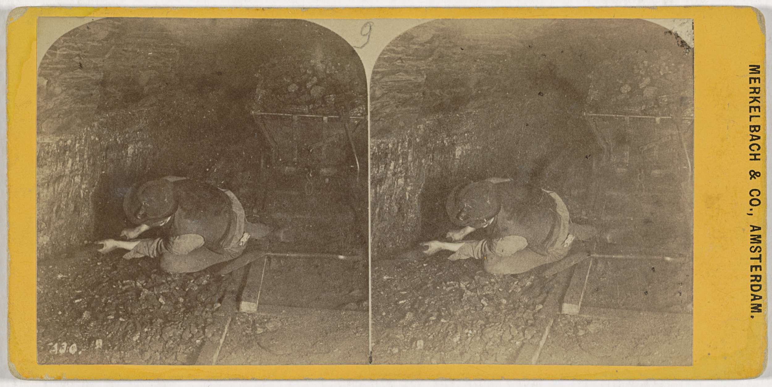 Mijnwerker aan het werk in een mijn bij Kerkrade