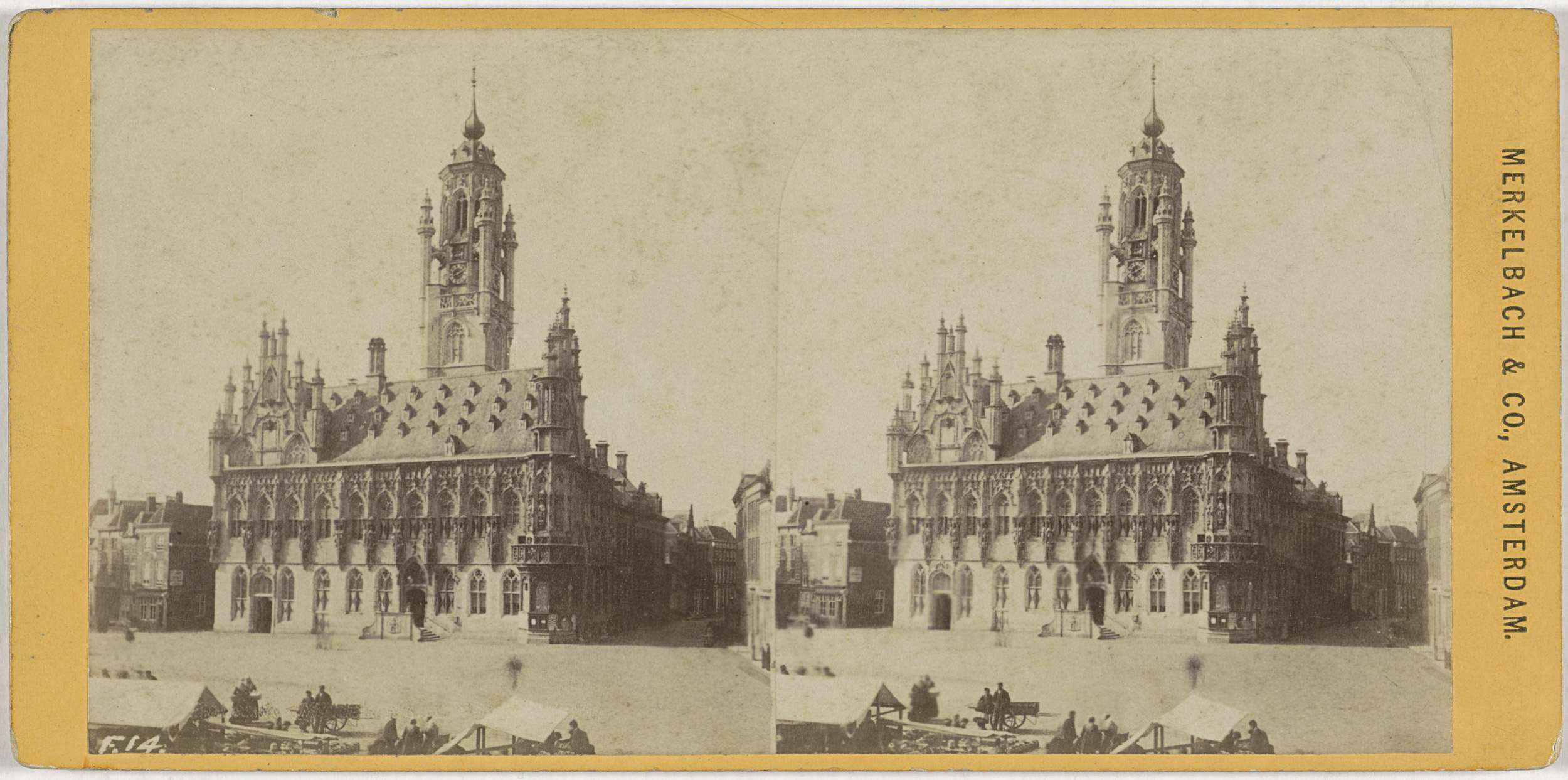 Gezicht op de Grote Markt en een deel van het stadhu...