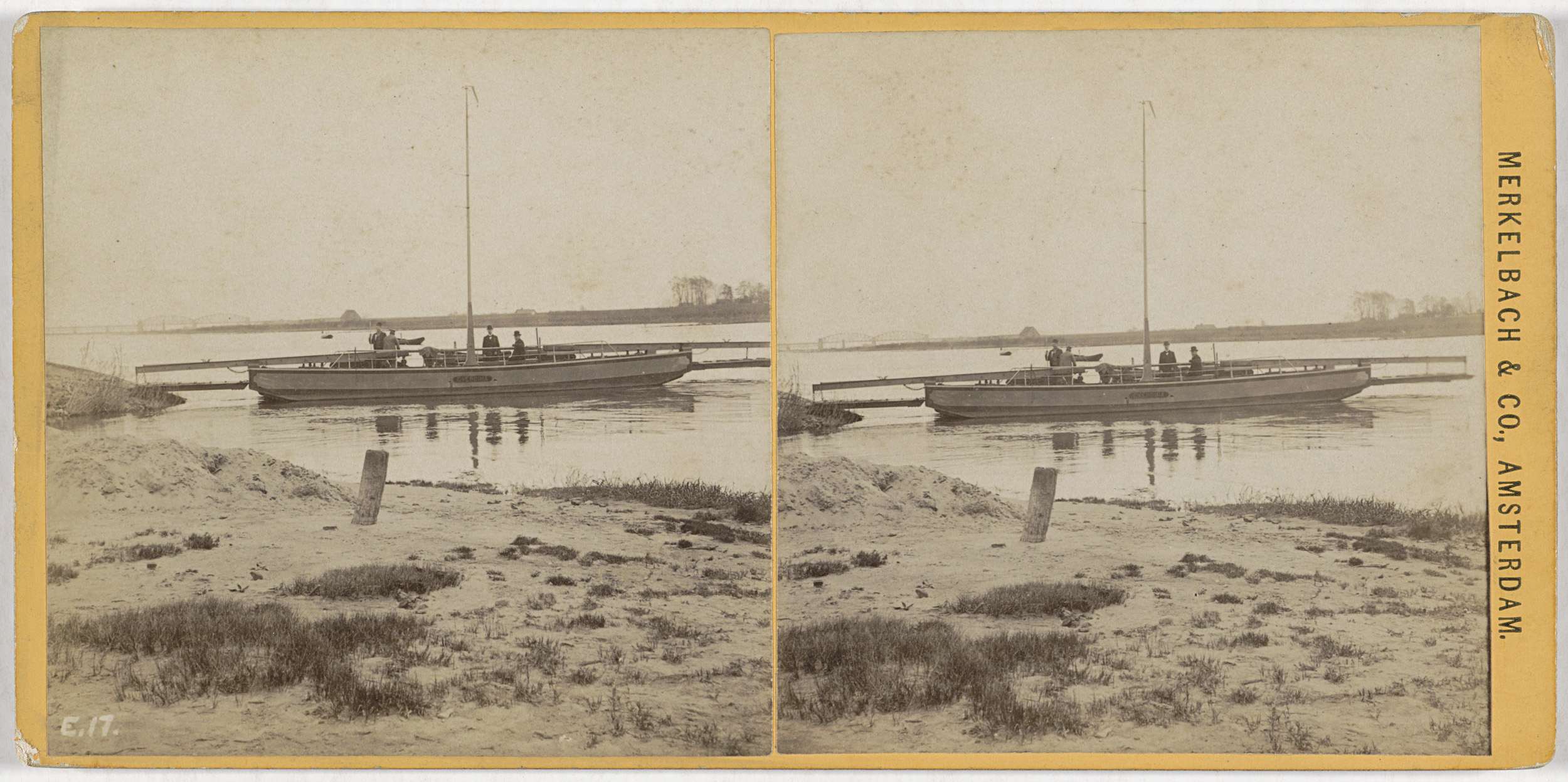 Gezicht op de Nederrijn met het Drielse Veer en de s...