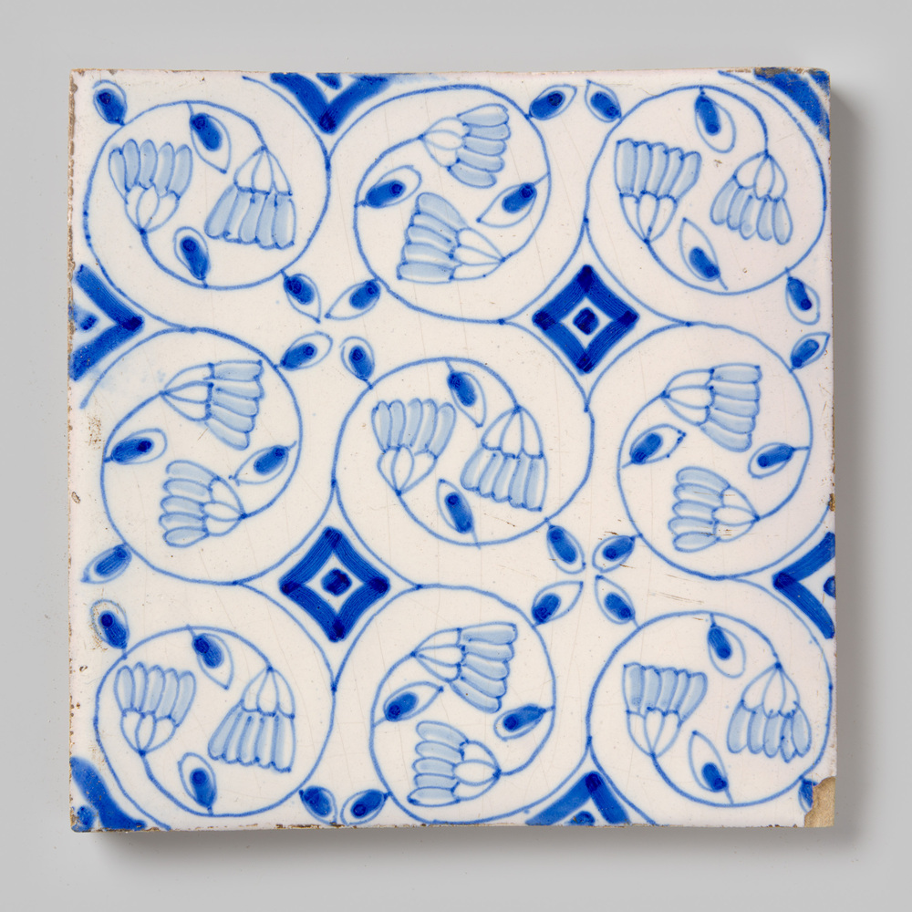 tegel van keramiek met tinglazuur, voorstellende: or...