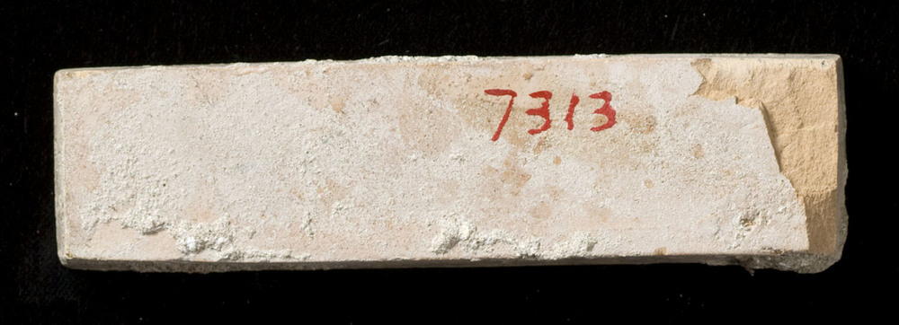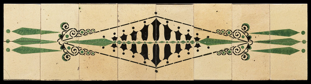 Randtegel in tinglazuur, voorstellende ornament met ...