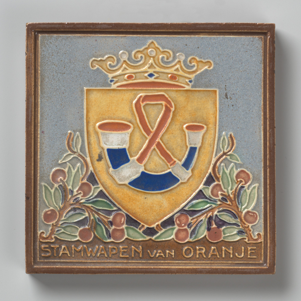 Tegel in cloisonné-techniek, met voorstelling: Stamw...