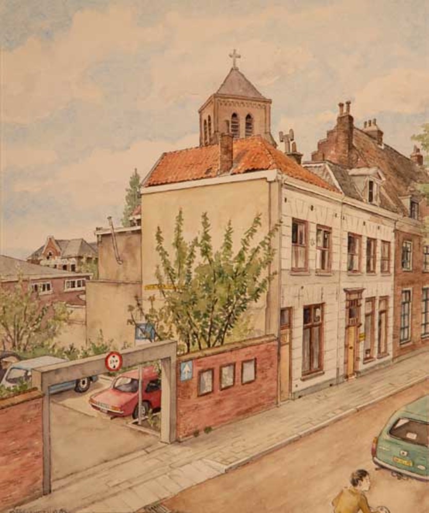Aquarel, voorstellende gebouw Opwaarts aan de St. Wa...