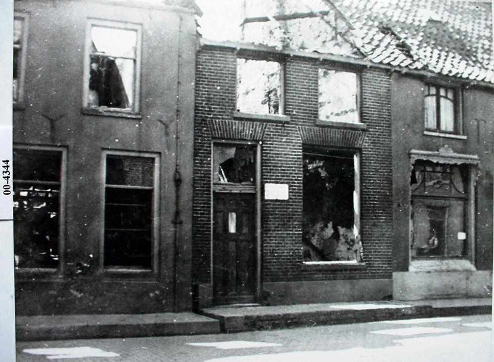 De getroffen huizen in de Langestraat tijdens de oor...