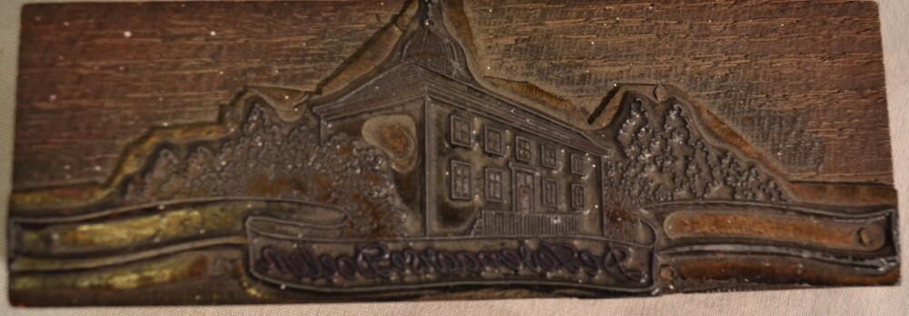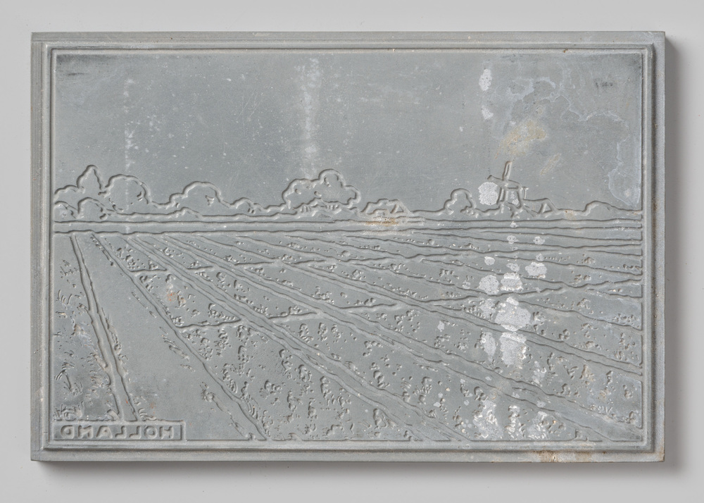 Lijncliché van zink en hout voorstellende 'De Zevena...