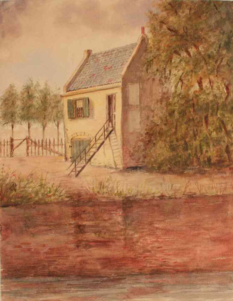 De schuur en woonhuis van de fam Bleumer in de Brede...