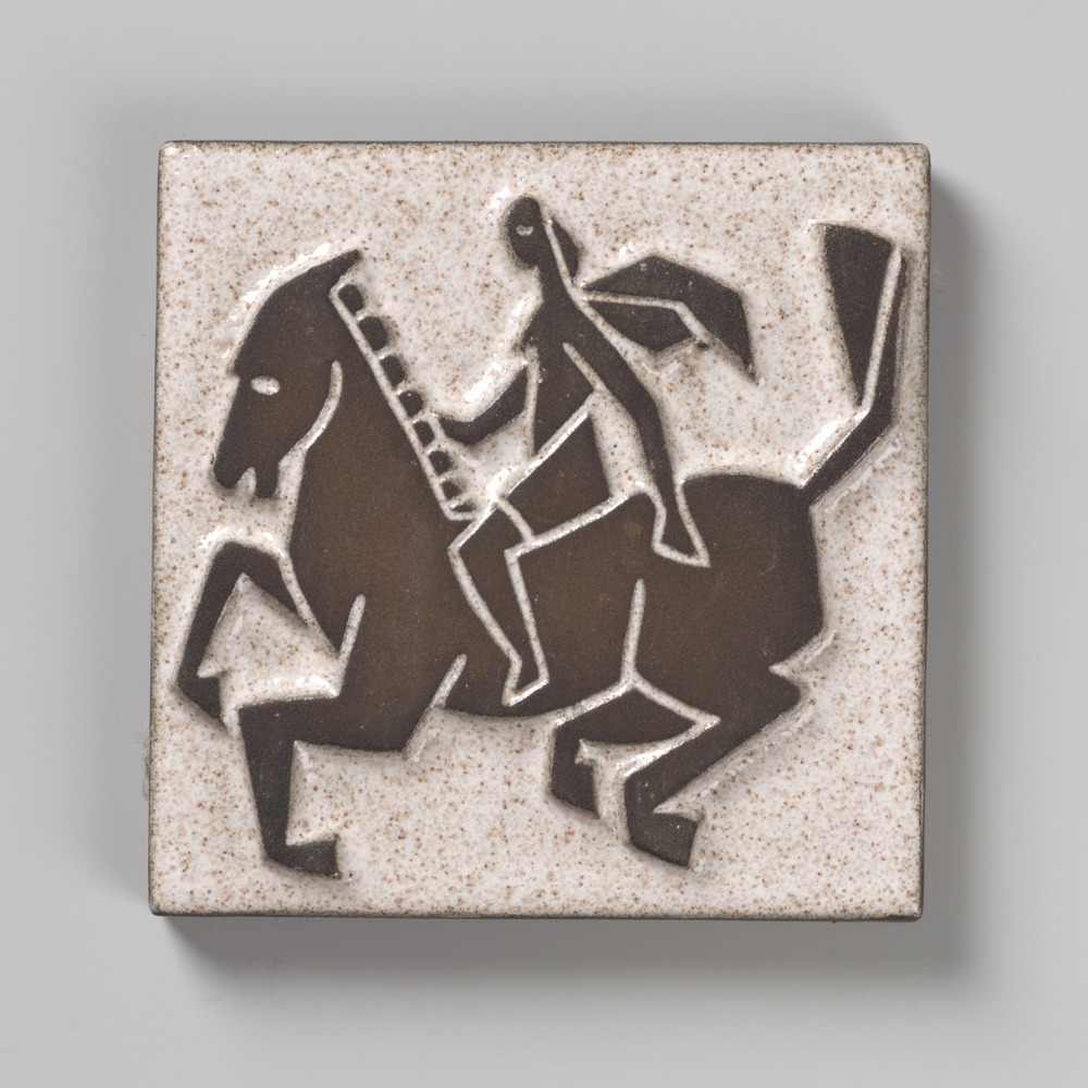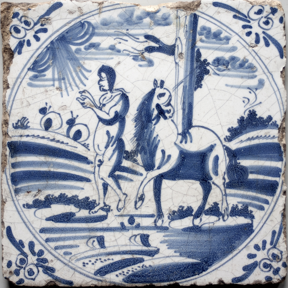 Tegel van keramiek met tinglazuur, voorstellende: wa...
