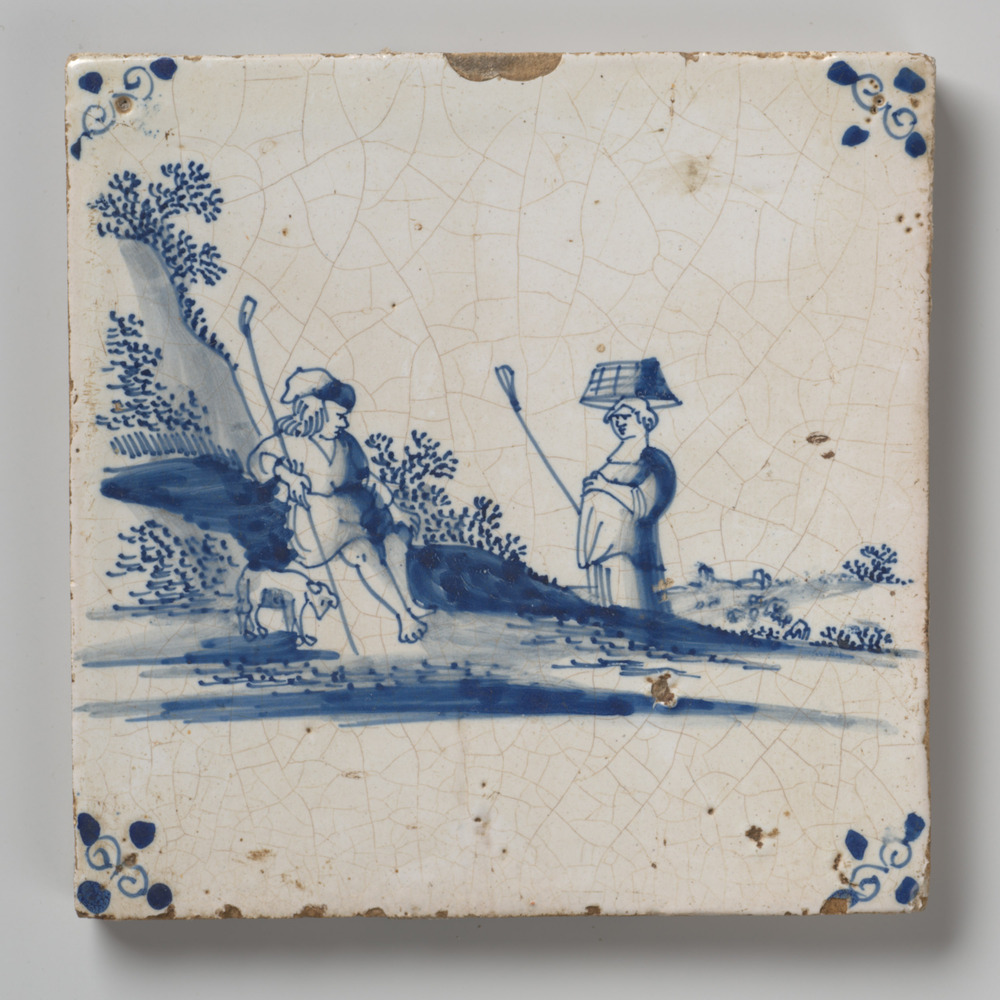 tegel van aardewerk met tinglazuur, voorstellende: l...