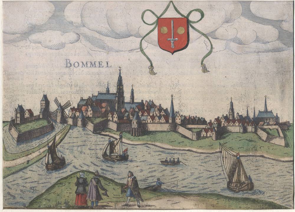 Geschematiseerd gezicht op Zaltbommel vanaf de Waalz...