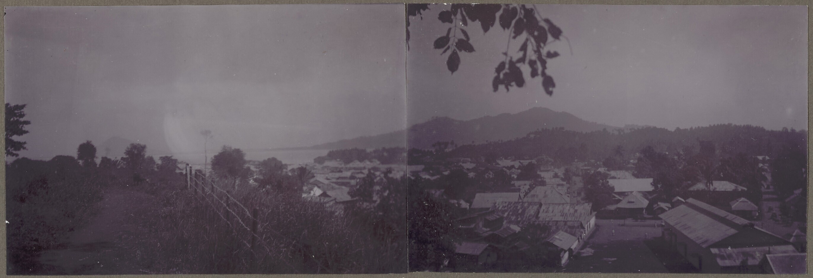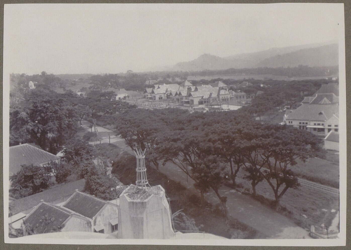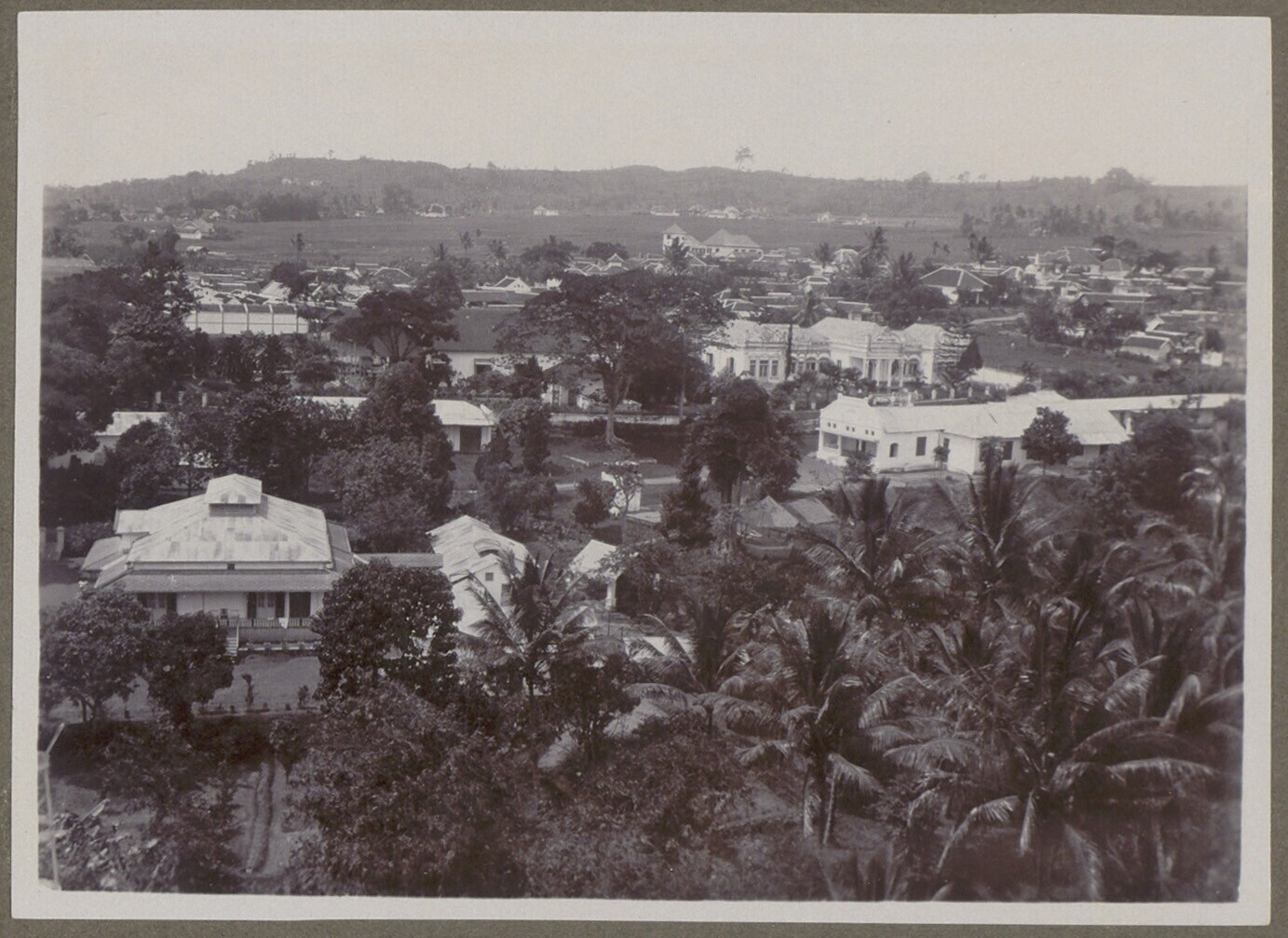 Uitzicht over koloniale stadsbebouwing, Java