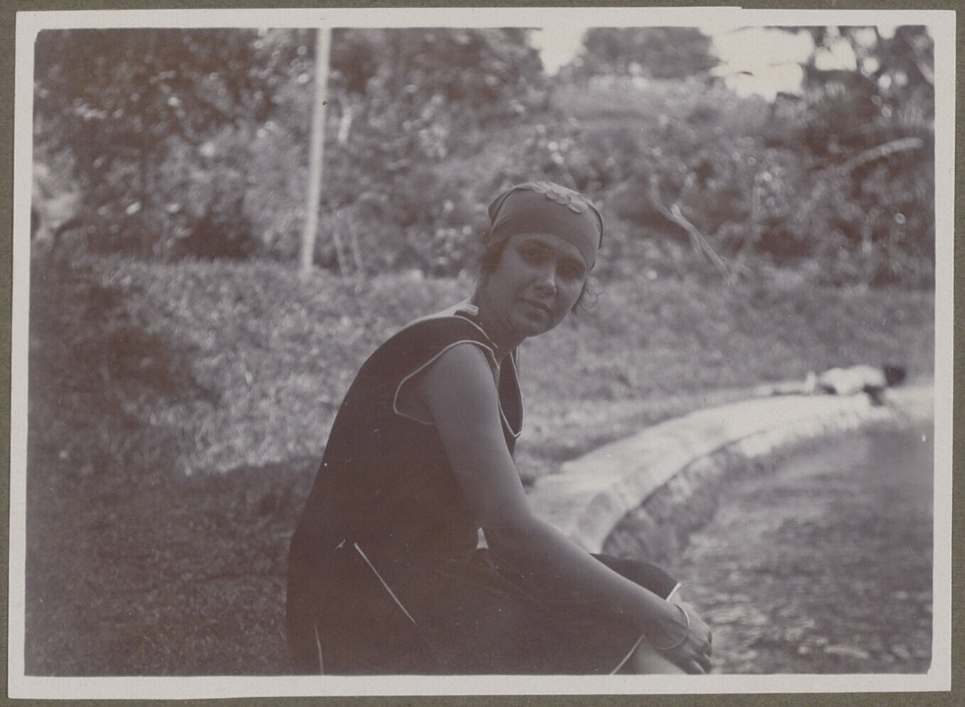 Corry Kan aan rand vijver of waterbassin, Java