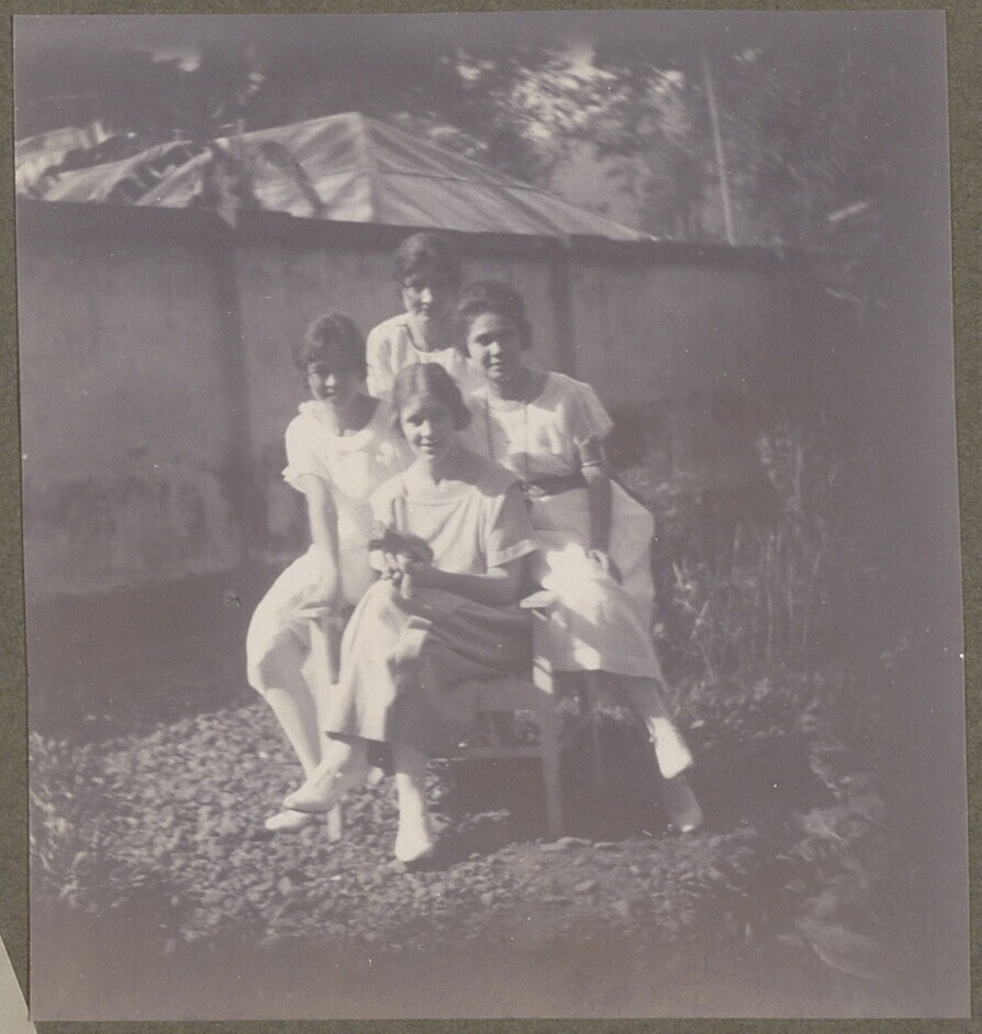 Corry Kan (rechts) en drie vrouwen (zusters) zittend...