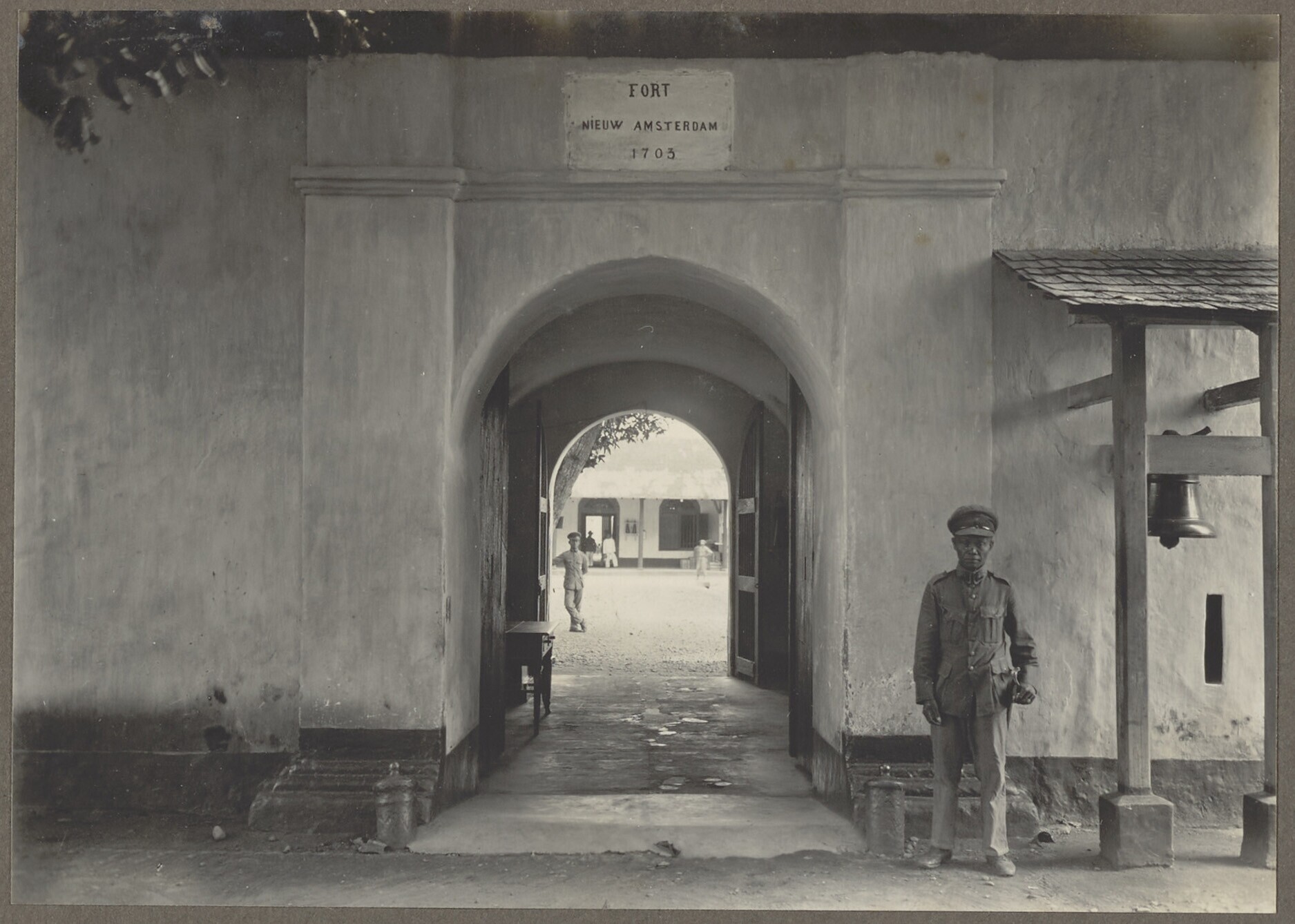 Waterput, bewaker en gevangene in Fort Nieuw Amsterd...