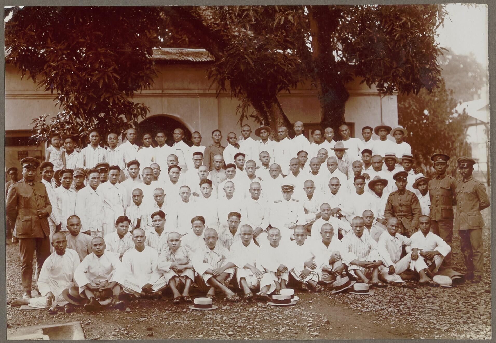 Groepsfoto gevangen met bewakers in Fort Nieuw-Amste...