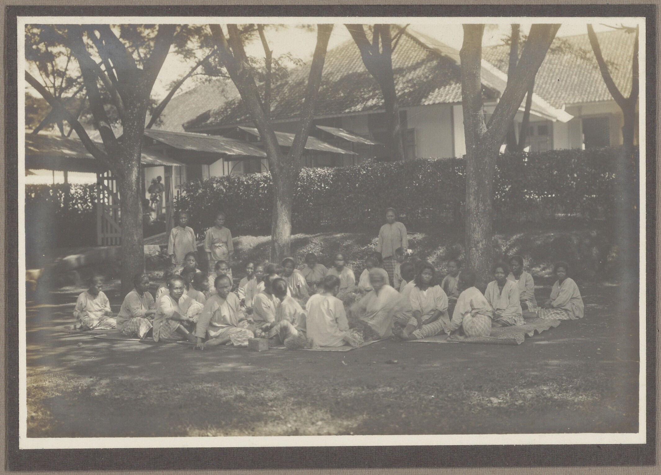 Een groep vrouwen biedt de Gouverneur Generaal een o...