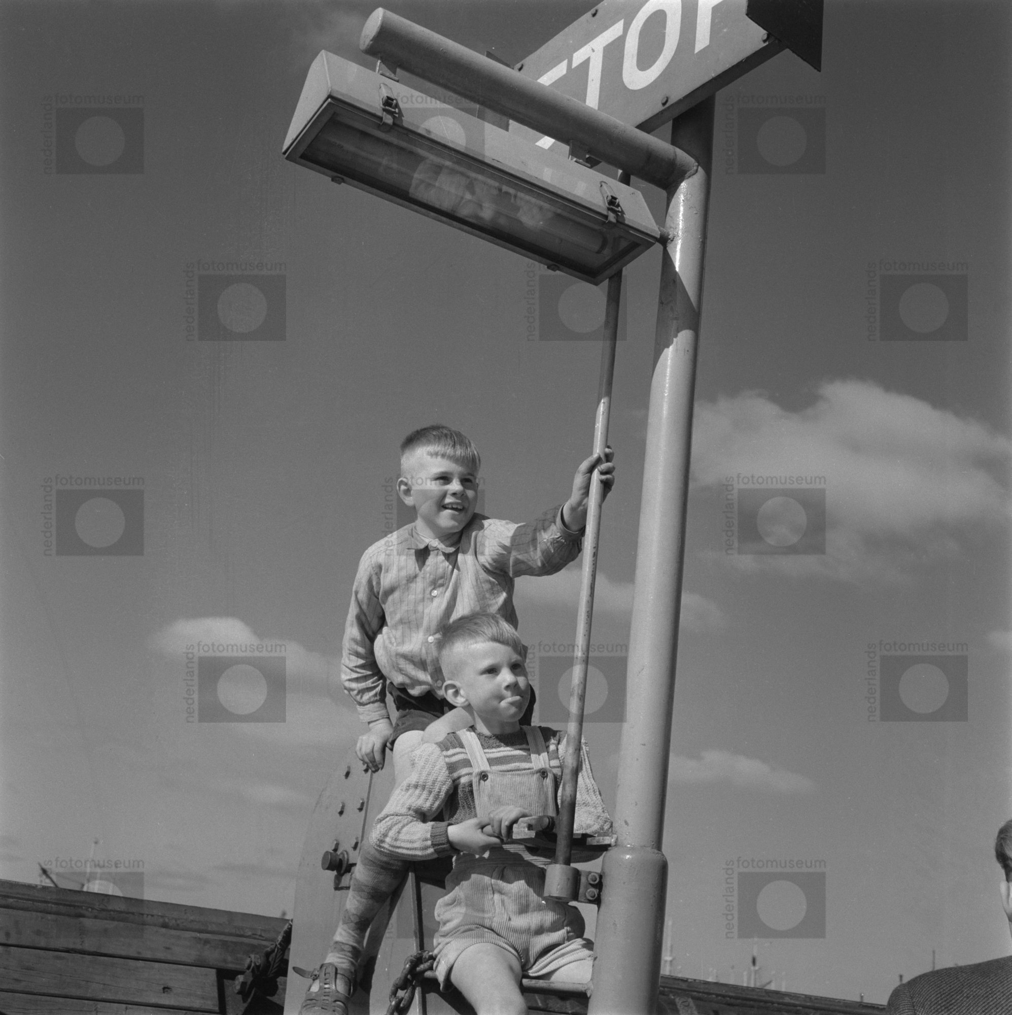 Amsterdam. Ponten over het IJ. Twee jongetjes beklim...