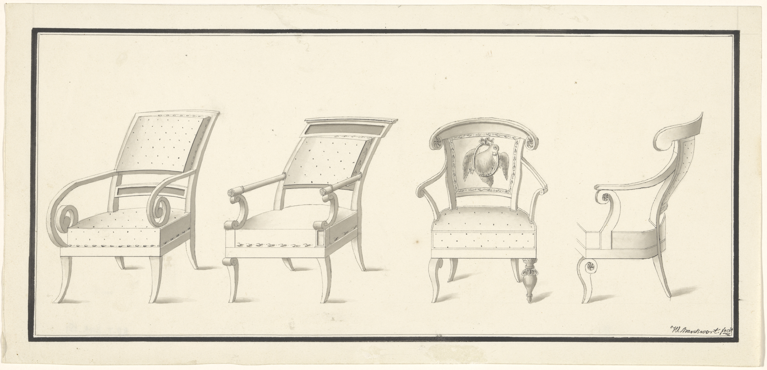 Secretaire met twee sfinxen, voor- en zijaanzicht me...