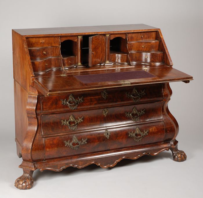 Wortelnotenhouten gefineerde rococo klep-secretaire