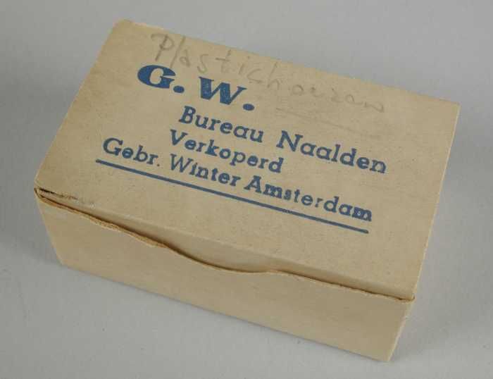Kleine kartonnen doos met "G.W." bureau naalden ofwe...