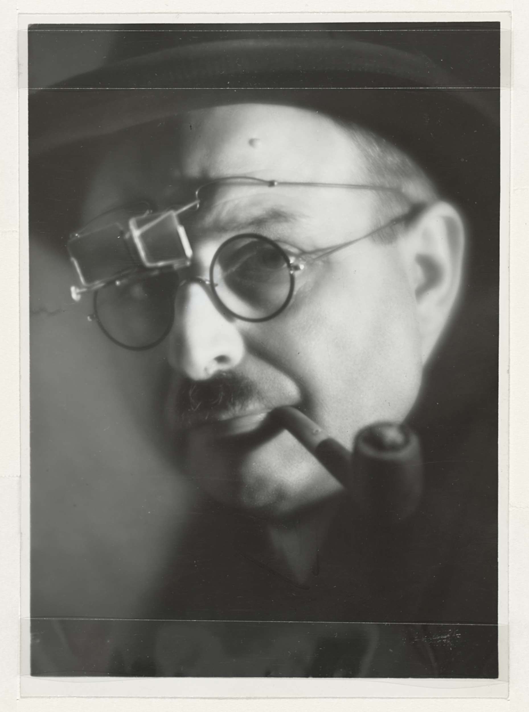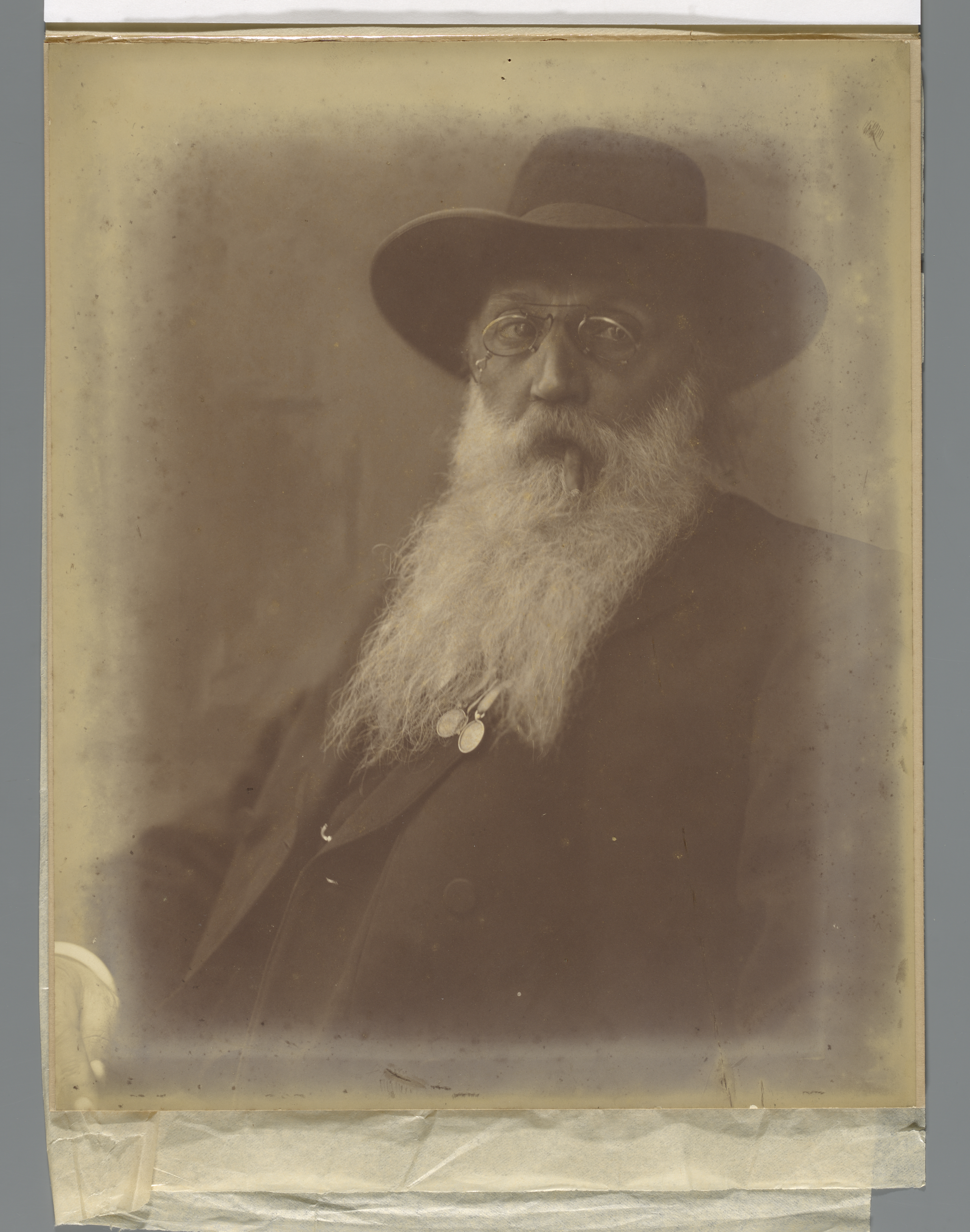 Portret van een man met baard en hoed en een sigaar ...