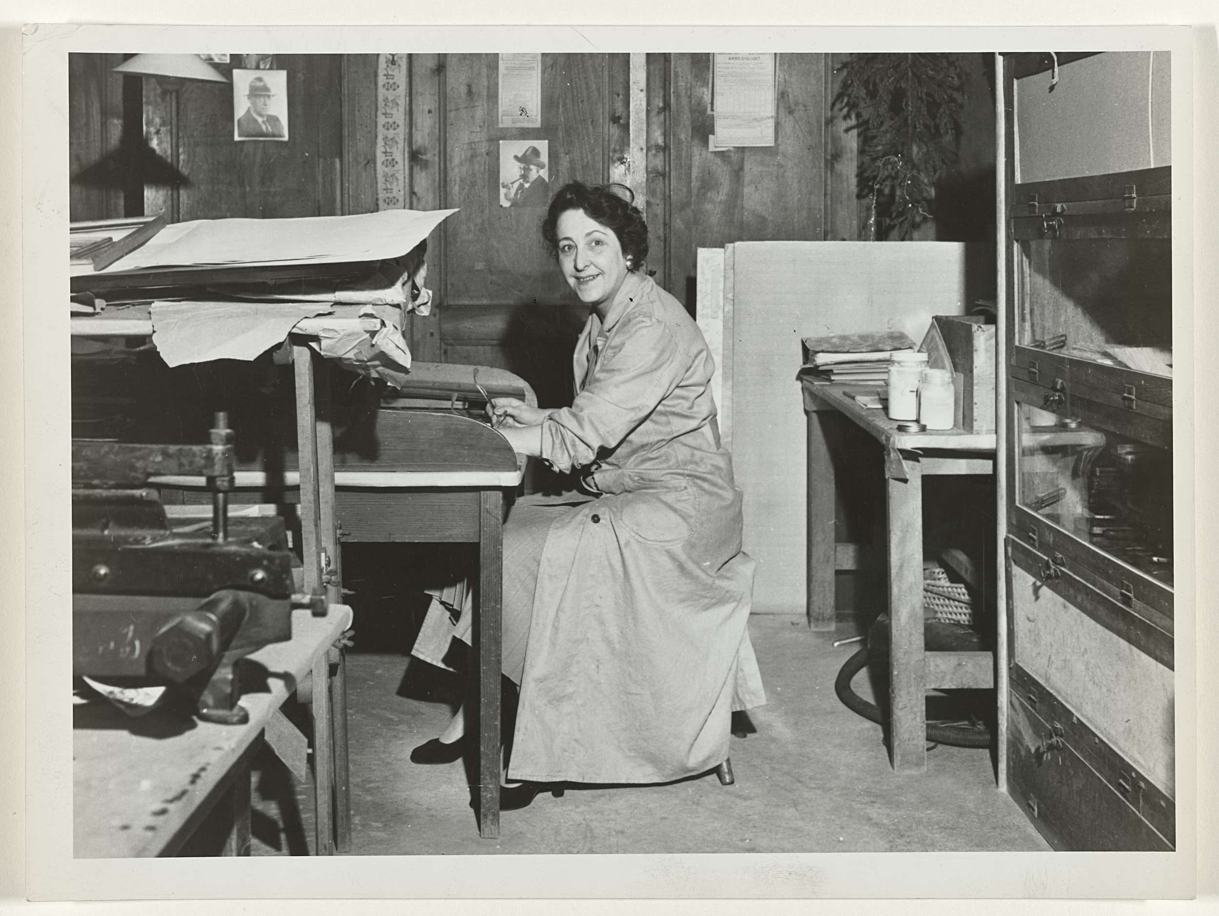 Portret van Mies Rosenboom-Merkelbach in atelier