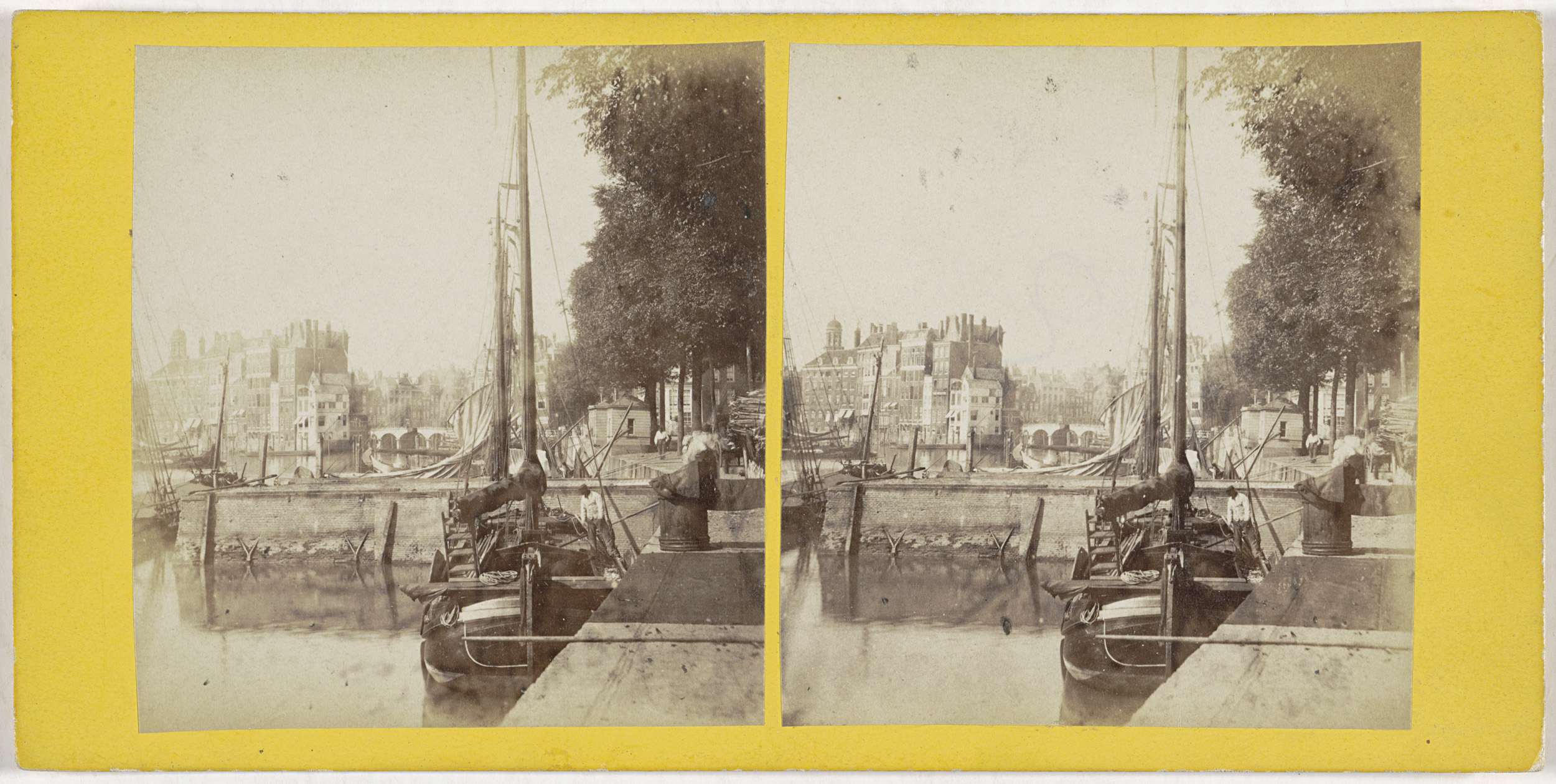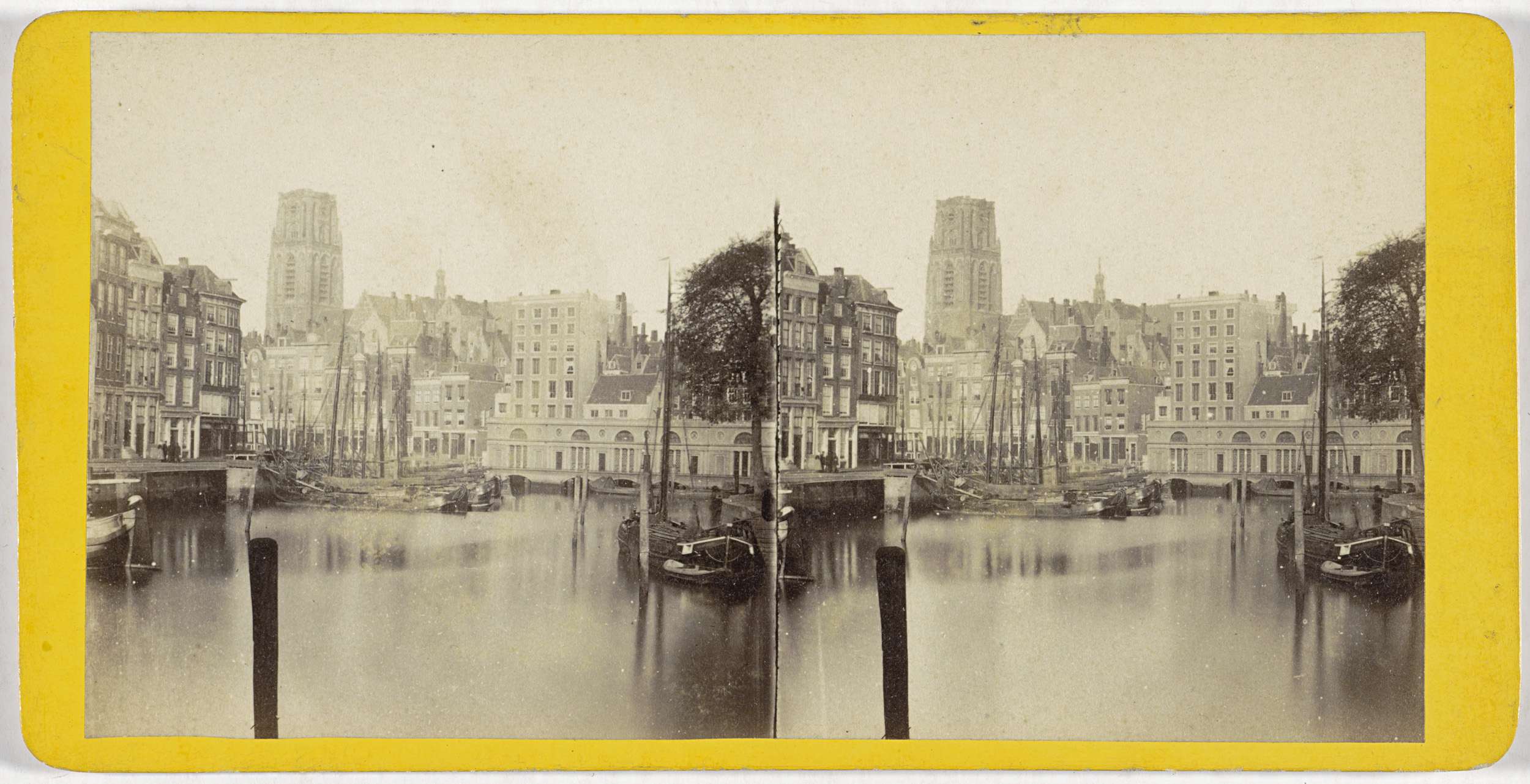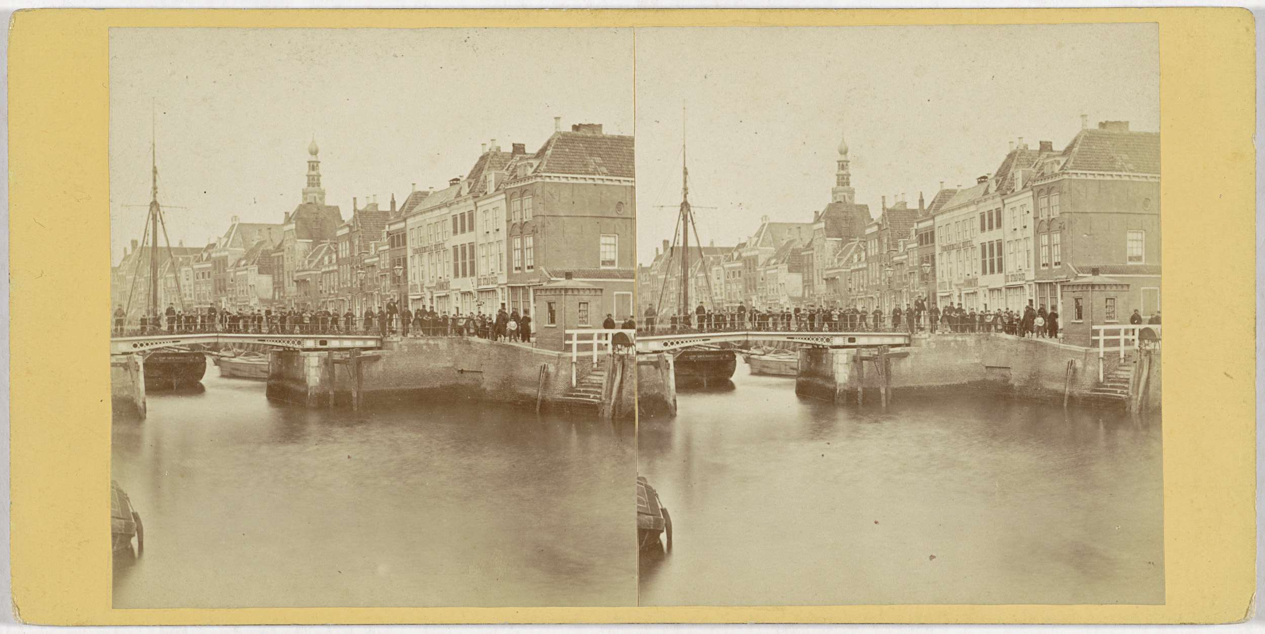 Gezicht op de Wijnhaven in Dordrecht met de Nieuwbru...