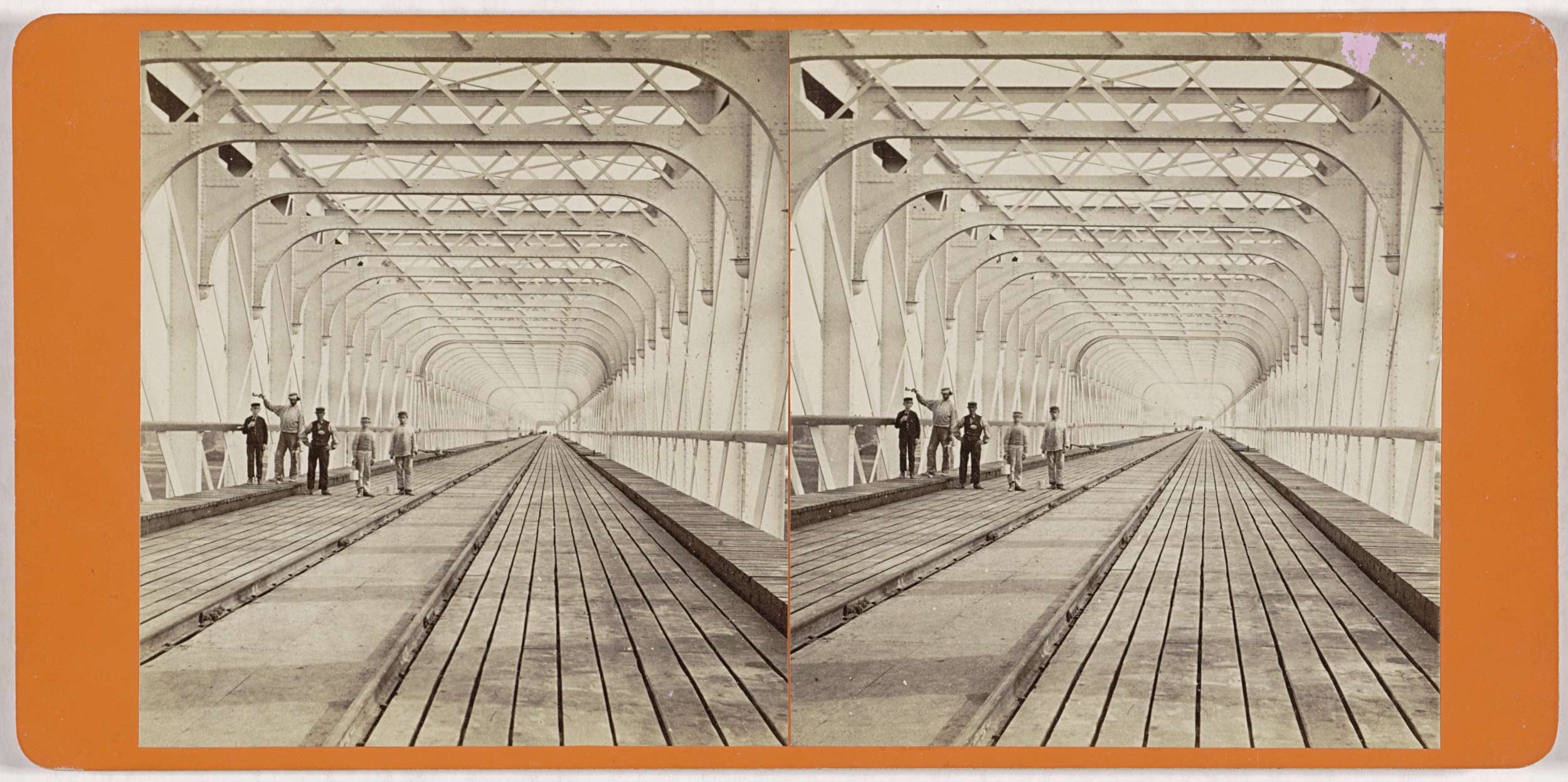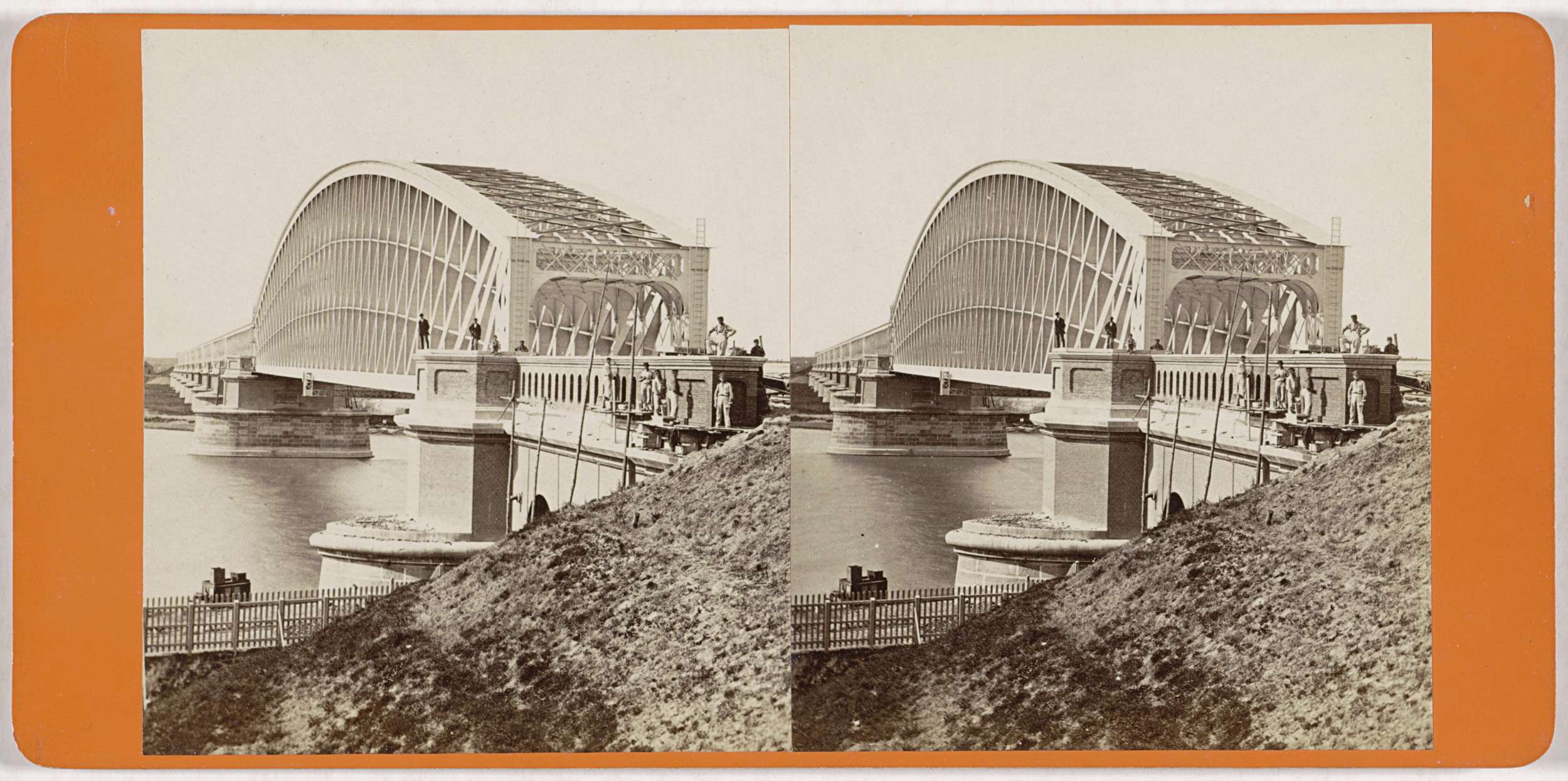 Gezicht op de Kuilenburgse spoorbrug bij Culemborg
