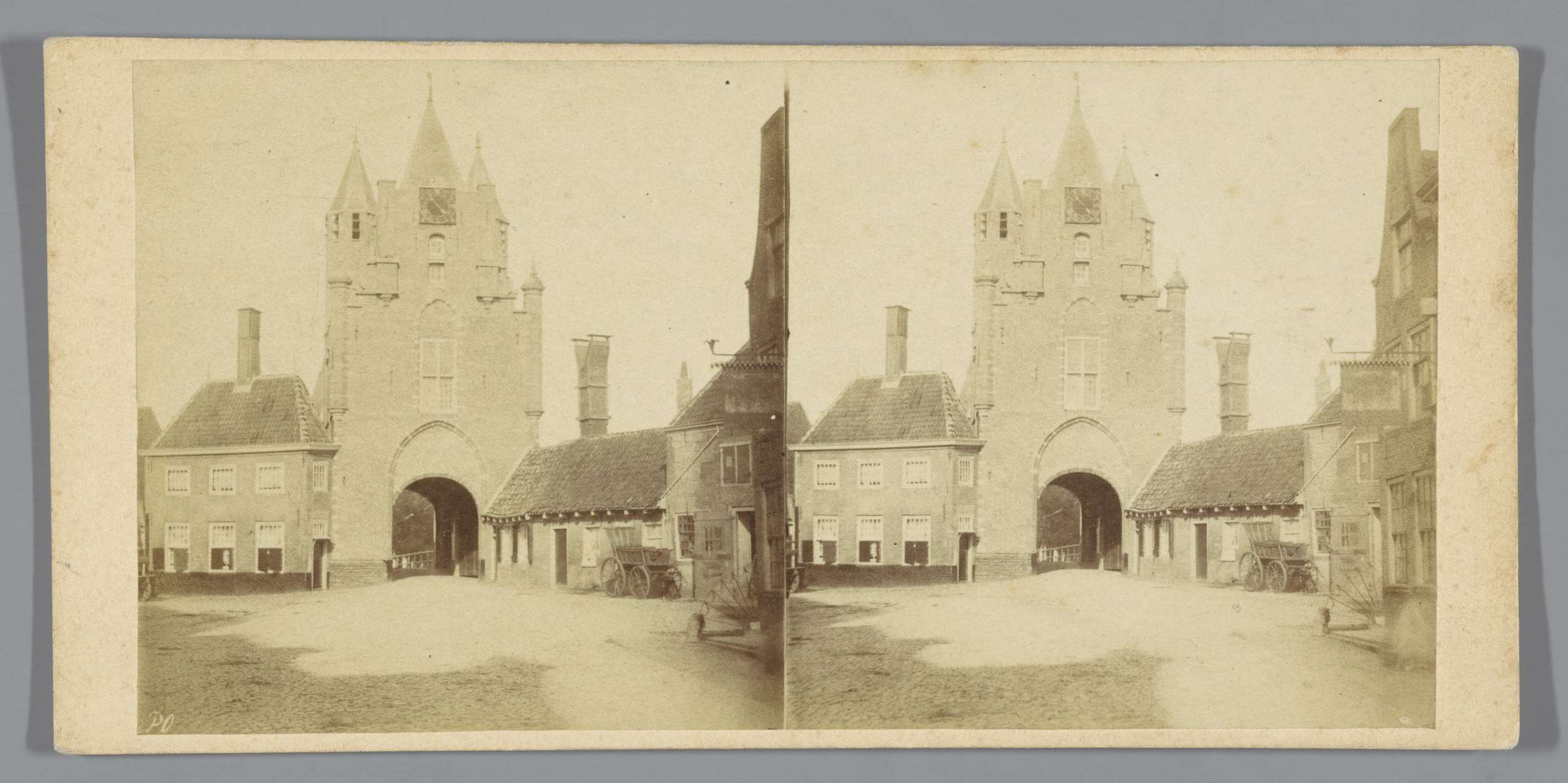 Gezicht op de Kleine Houtpoort in Haarlem, gezien va...