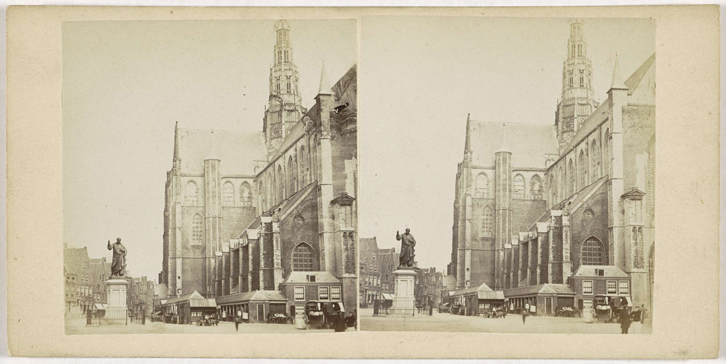 Gezicht op de Sint-Bavokerk en de Grote Markt in Haa...