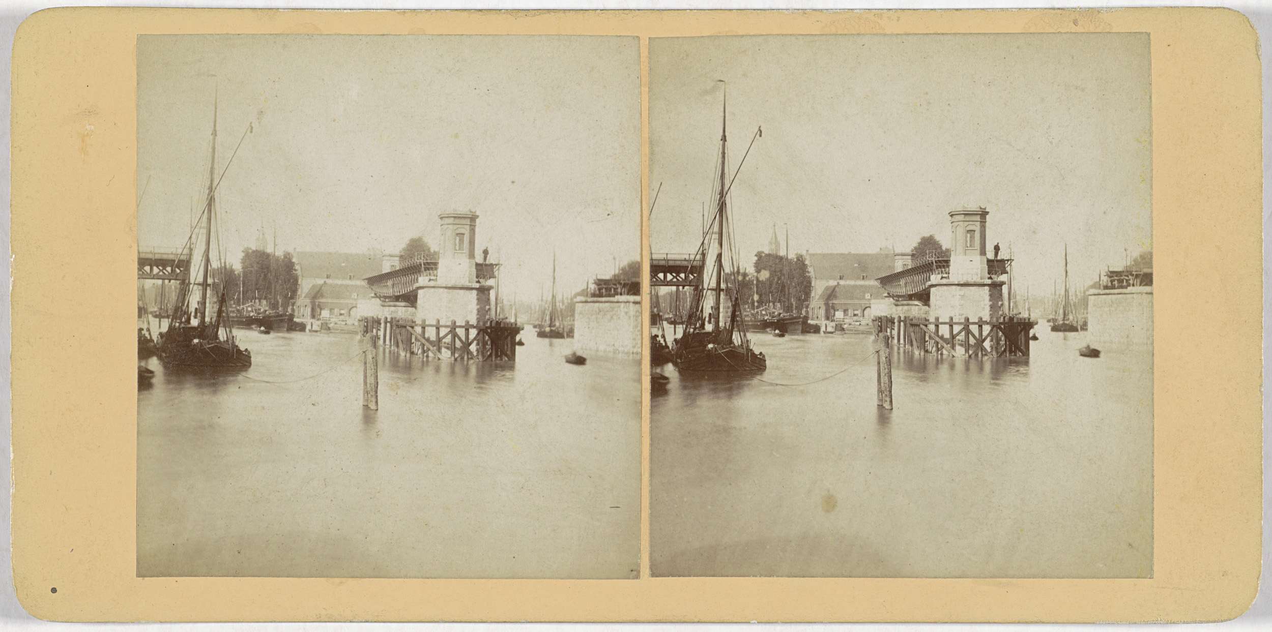 Gezicht op de grote spoorwegbrug bij Moerdijk