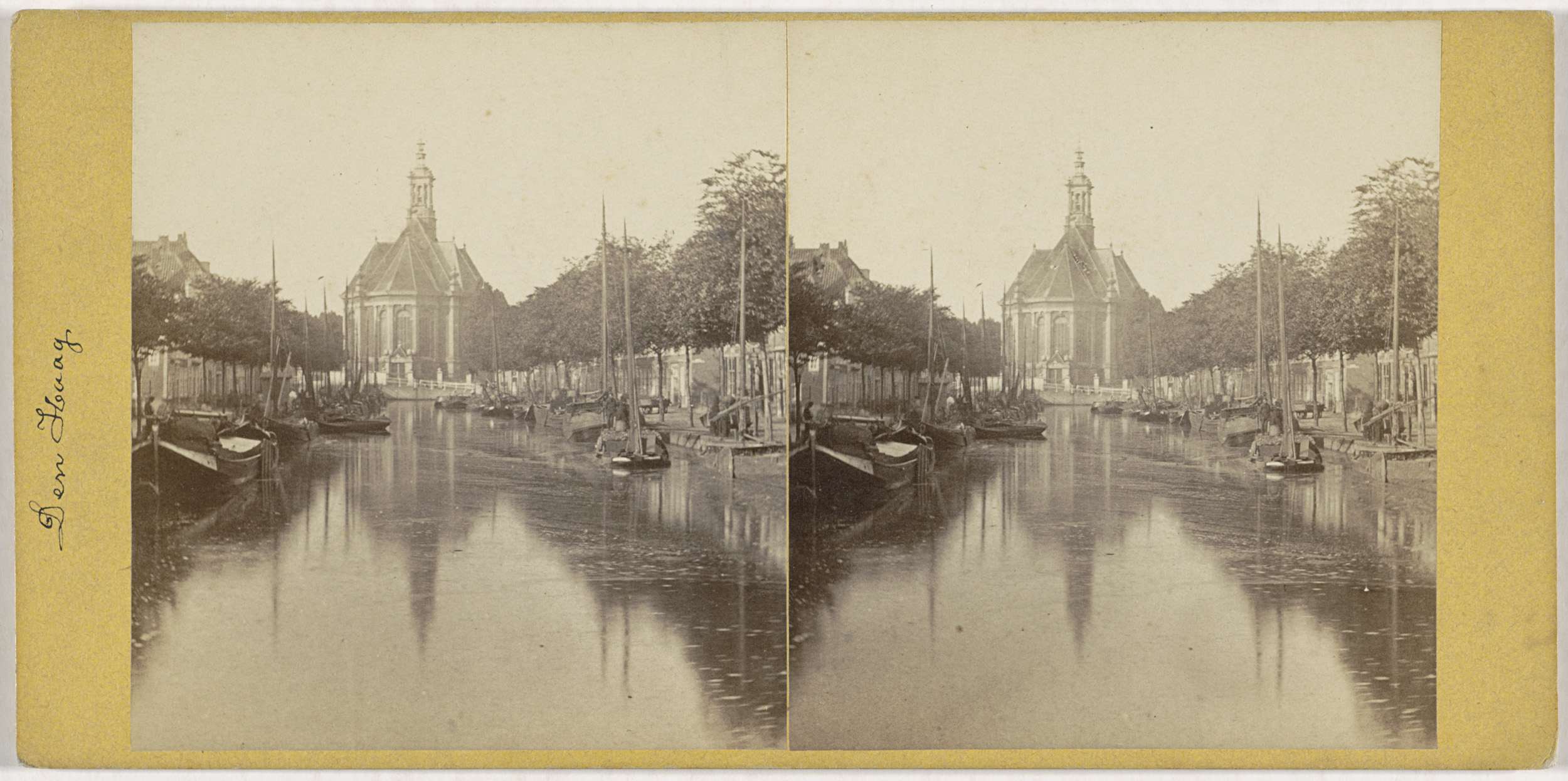 Gezicht op de Nieuwe Kerk in Den Haag, gezien vanaf ...