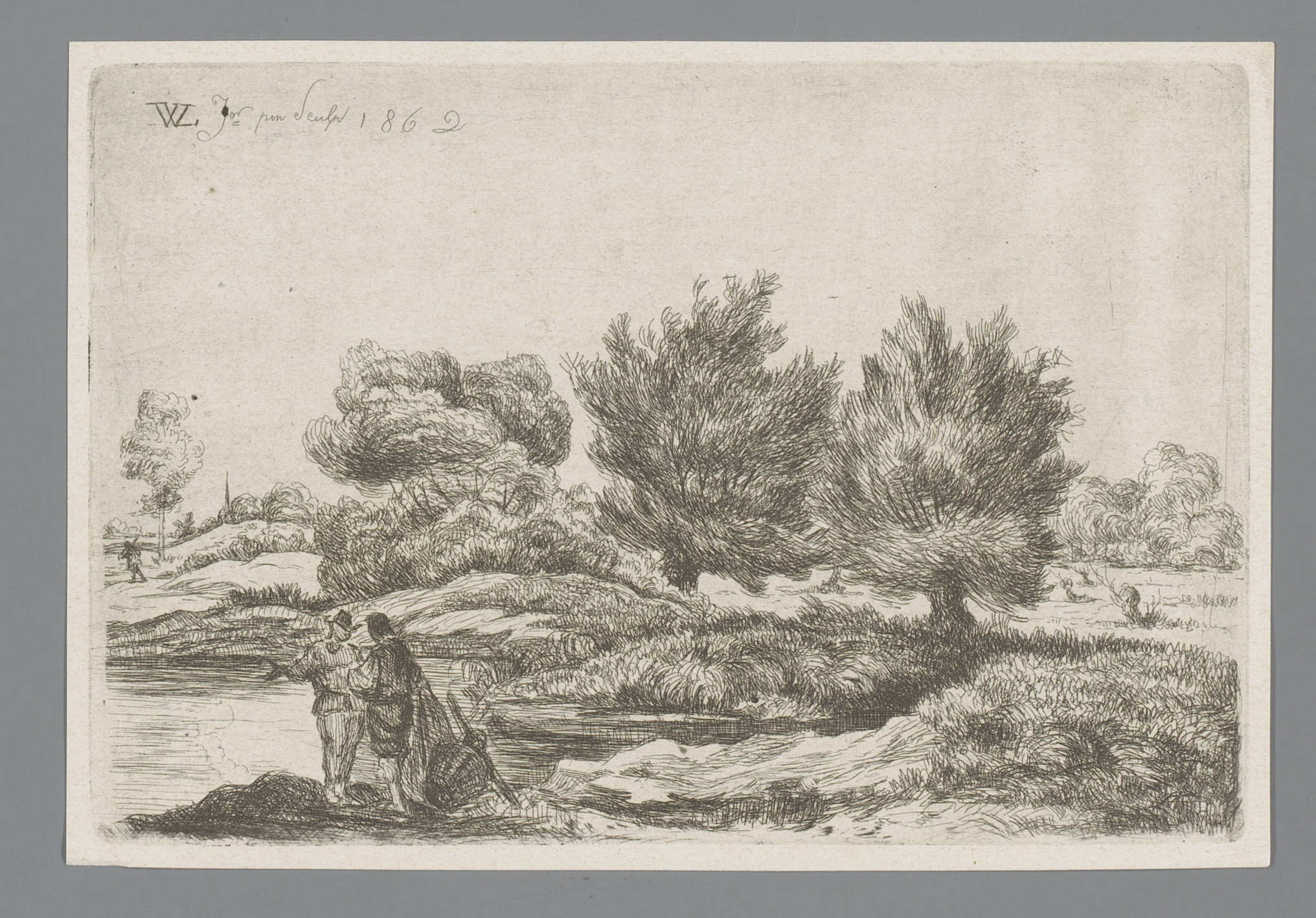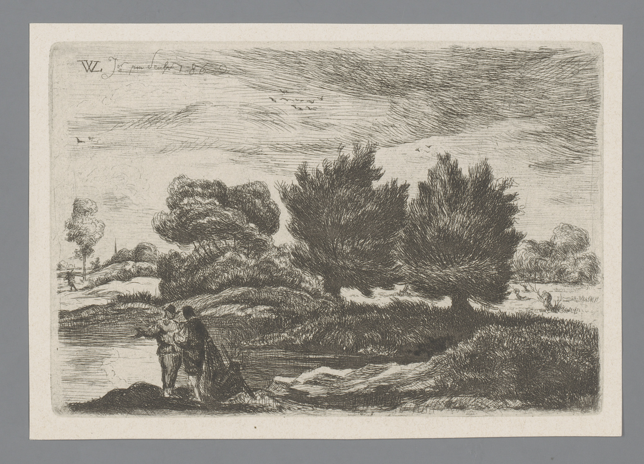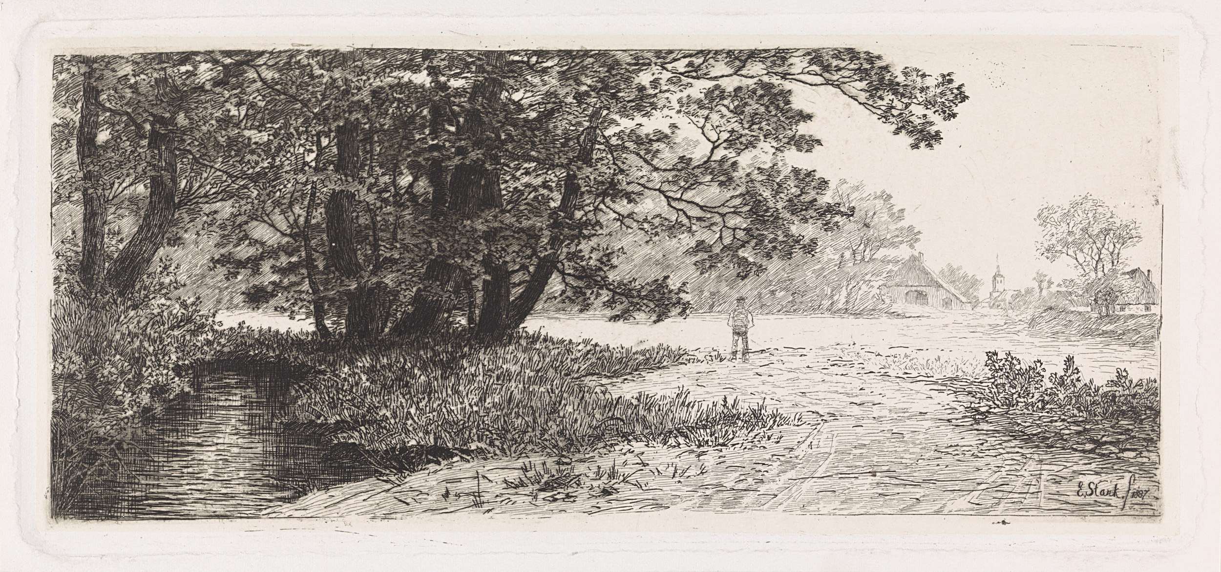 Figuren in een landschap met wilgen