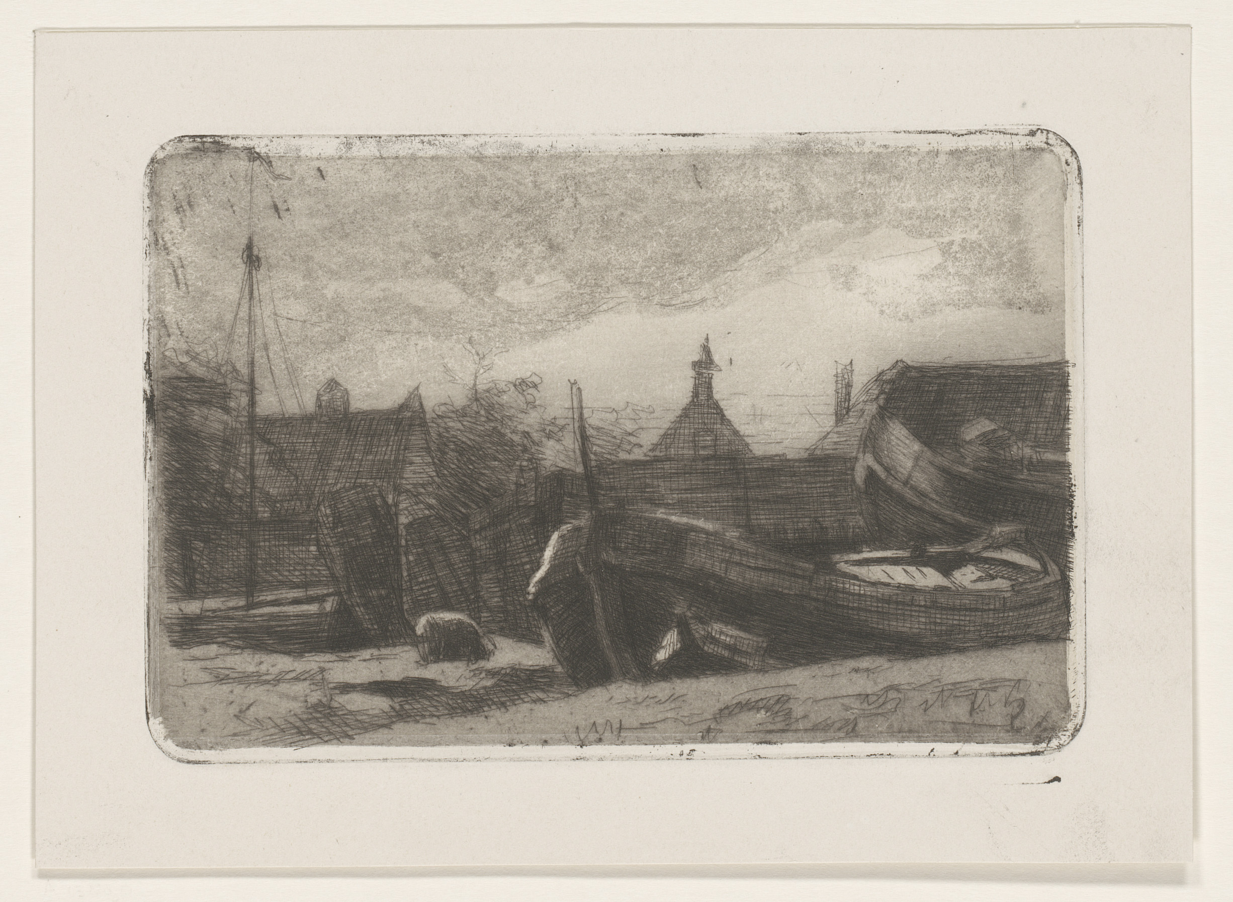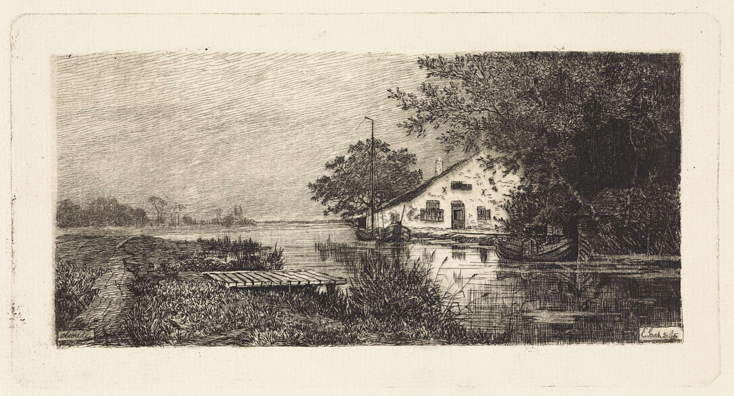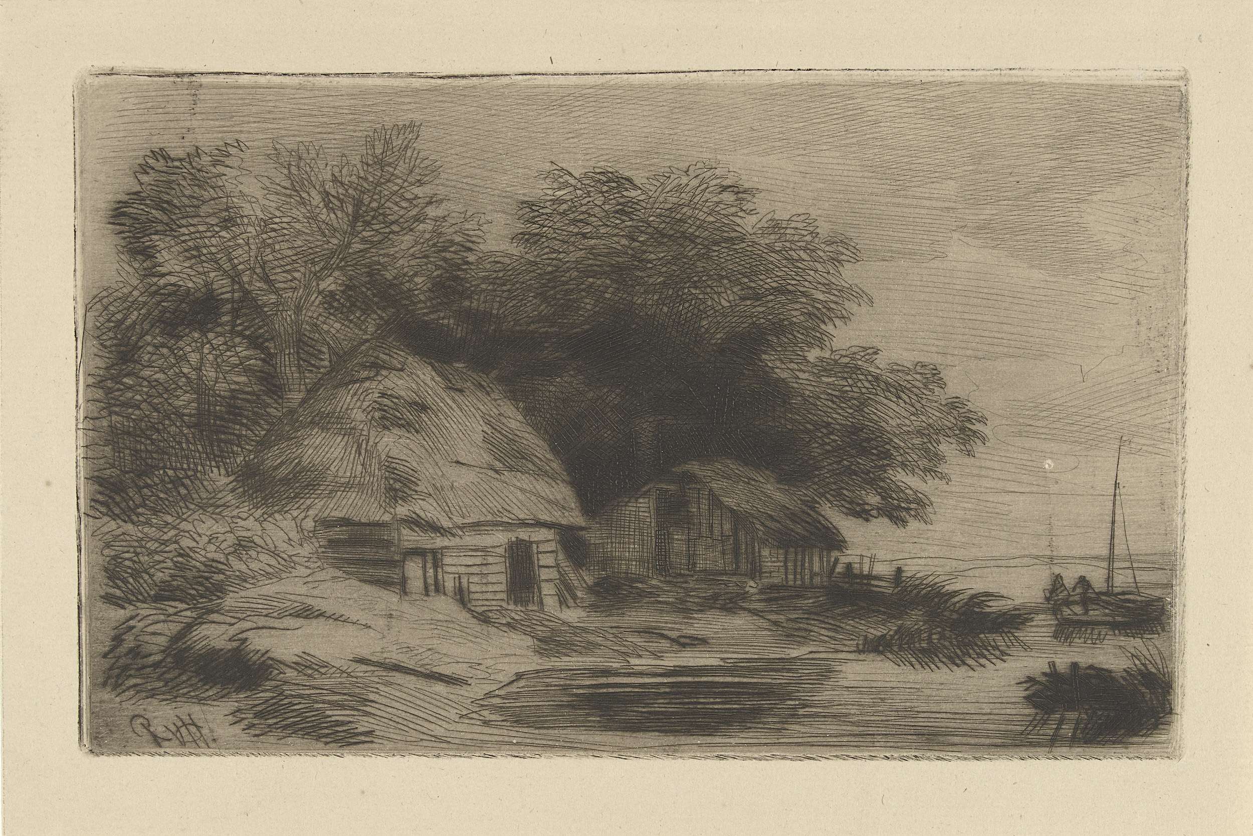 Twee schuren aan een oever